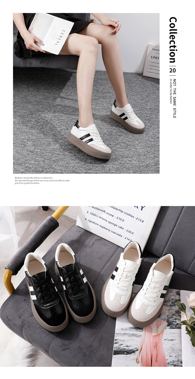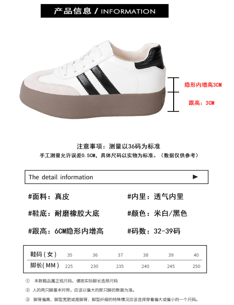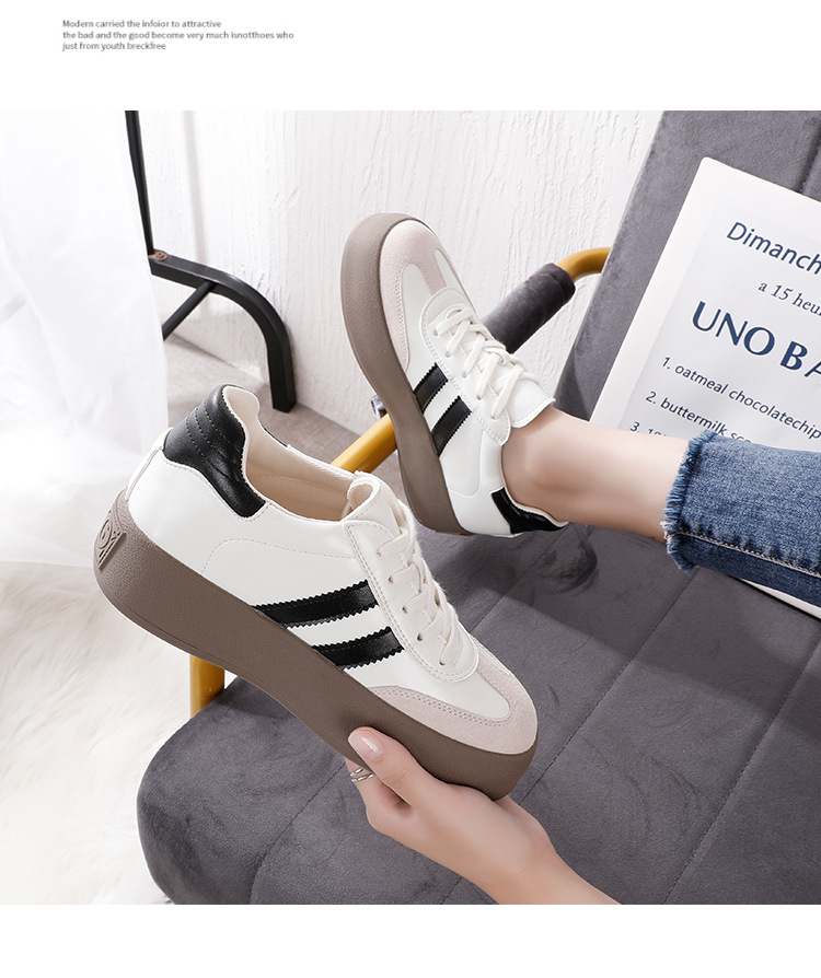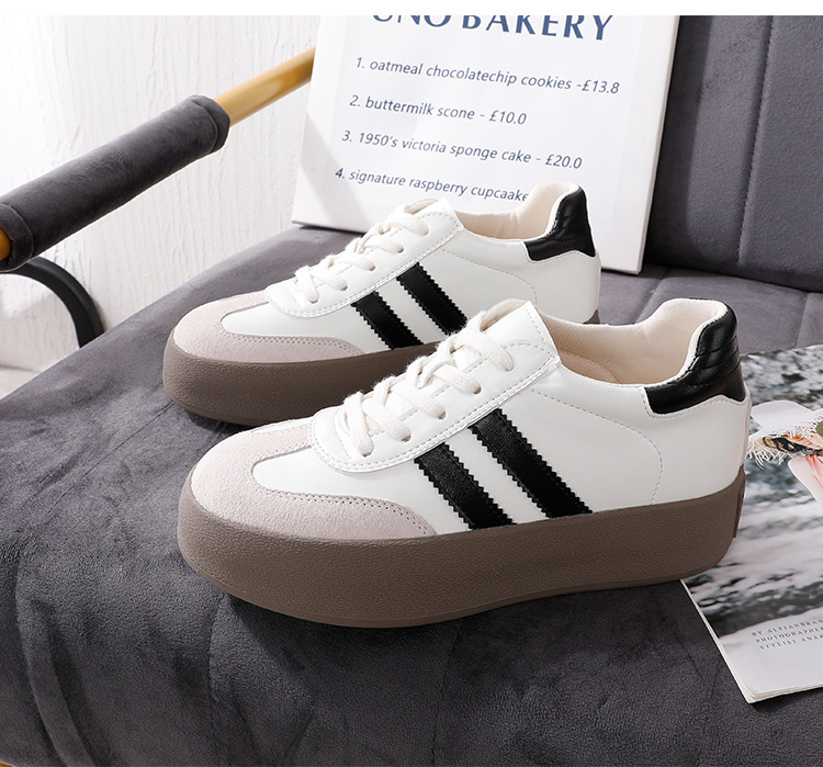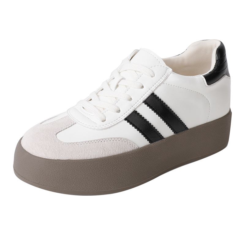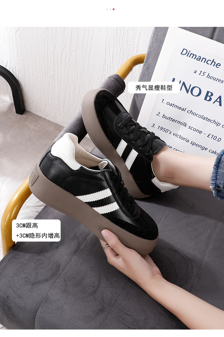 포도 엄마 Su Yinyin 가죽 두꺼운 단독 독일 훈련 신발 여성용 내부 높이 증가 부드러운 가죽 흰색 신발 캐주얼 스포츠 보드 신발