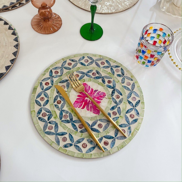 • 쉘 플레이스 매트-녹색 꽃 30cm