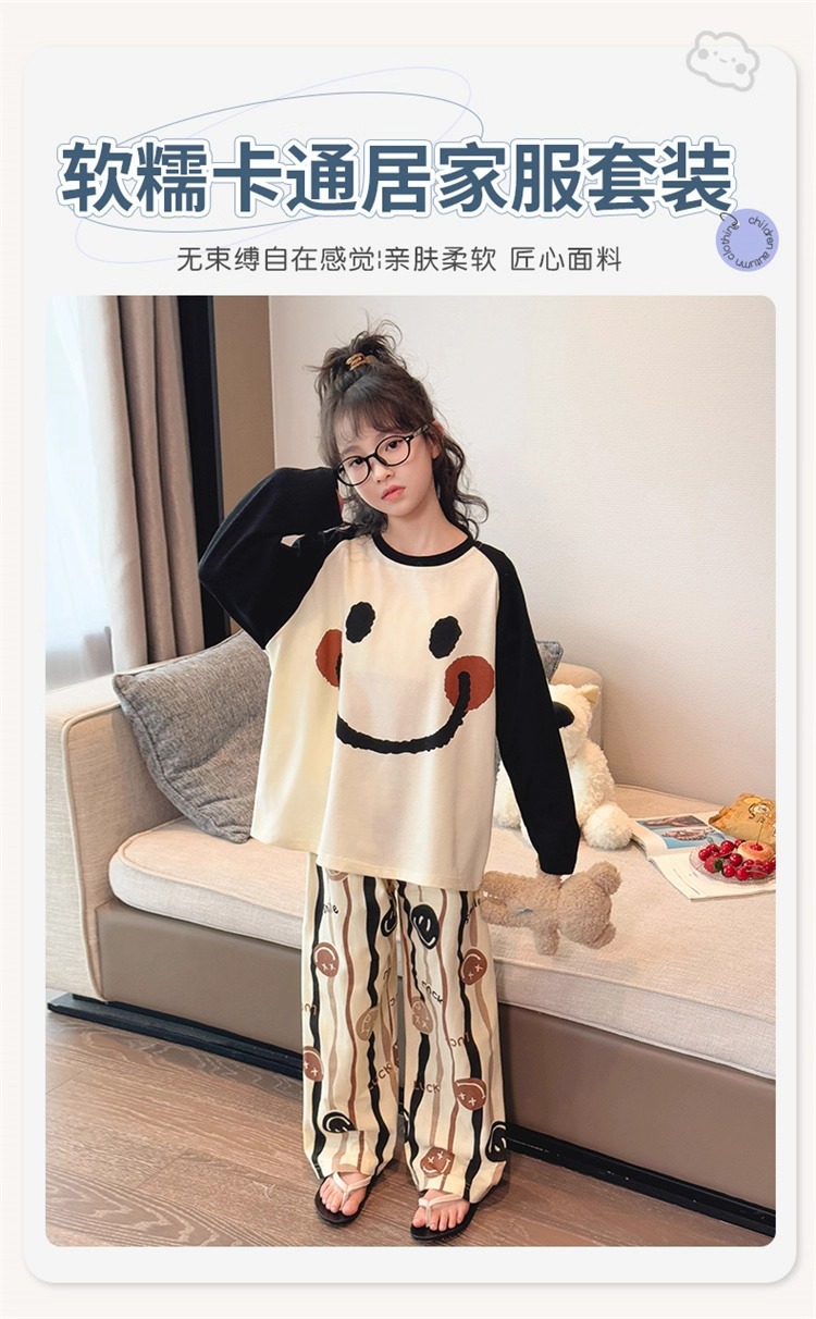 2025년 신상 아동 잠옷 여아 봄 가을 얇은 긴팔 긴바지 세트 여아용 세련된 공주 홈웨어