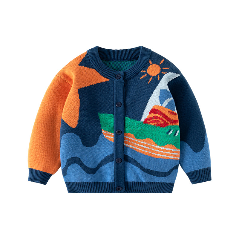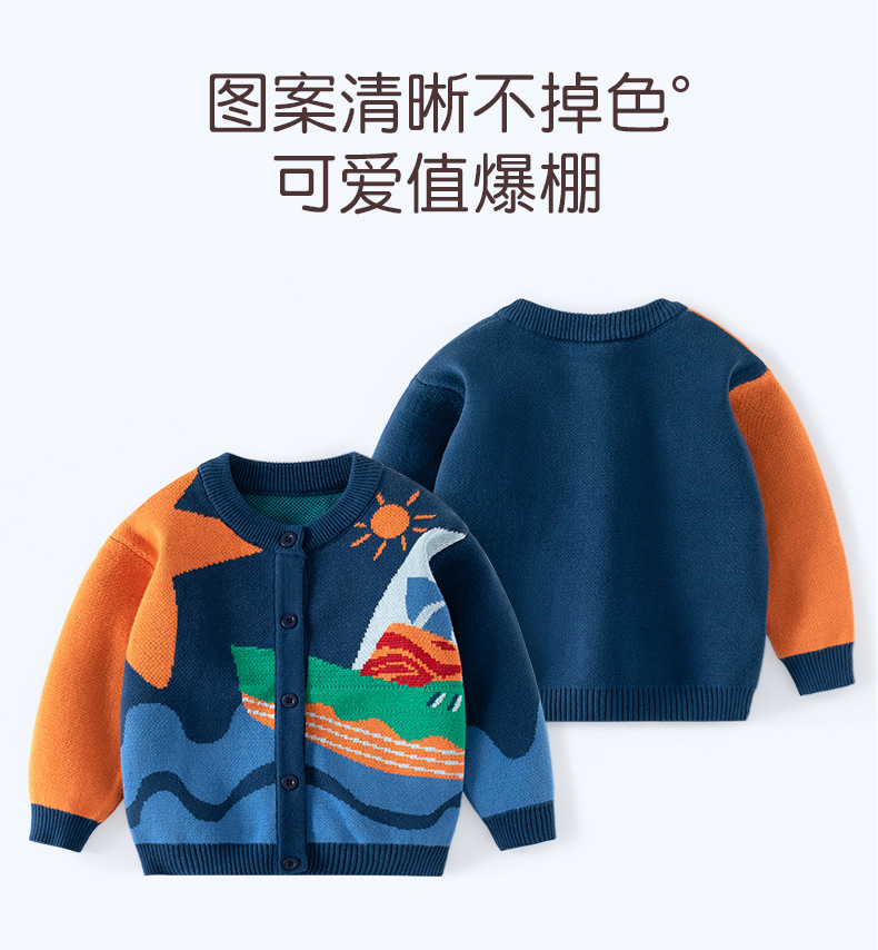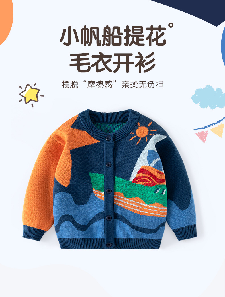 새로운 만화 작은 범선 아기 니트 카디건 순수 코튼 클래스 A 어린이 스웨터 가을, 겨울 어린이 니트 카디건스토어 가기