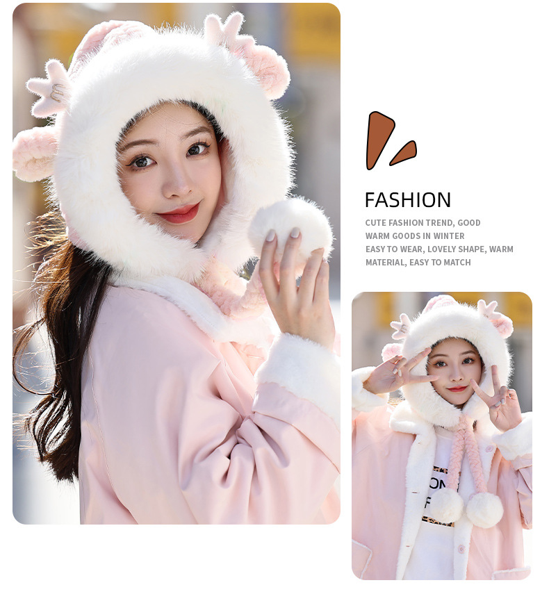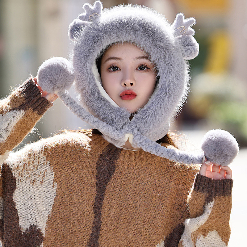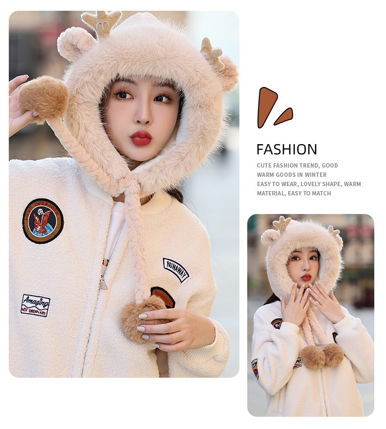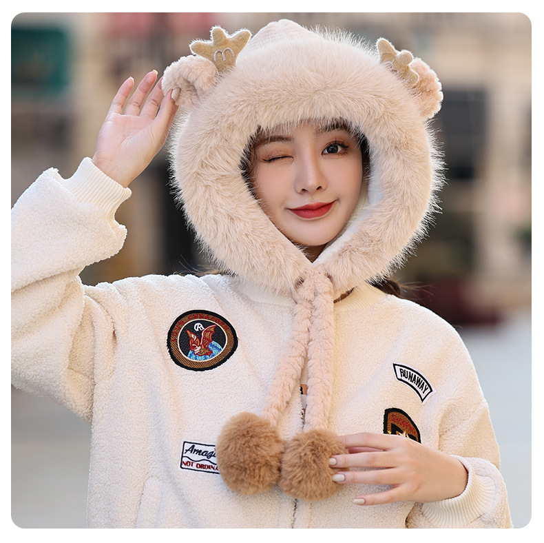 겨울 패션 모든 매치 플러시 모자 귀여운 교수형 공 귀 보호대 Baotou 드래곤 혼 달콤한 캐주얼 방한 따뜻한 모자
