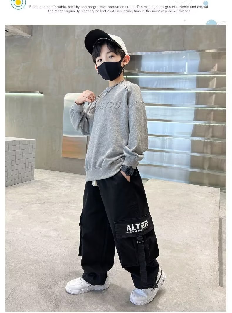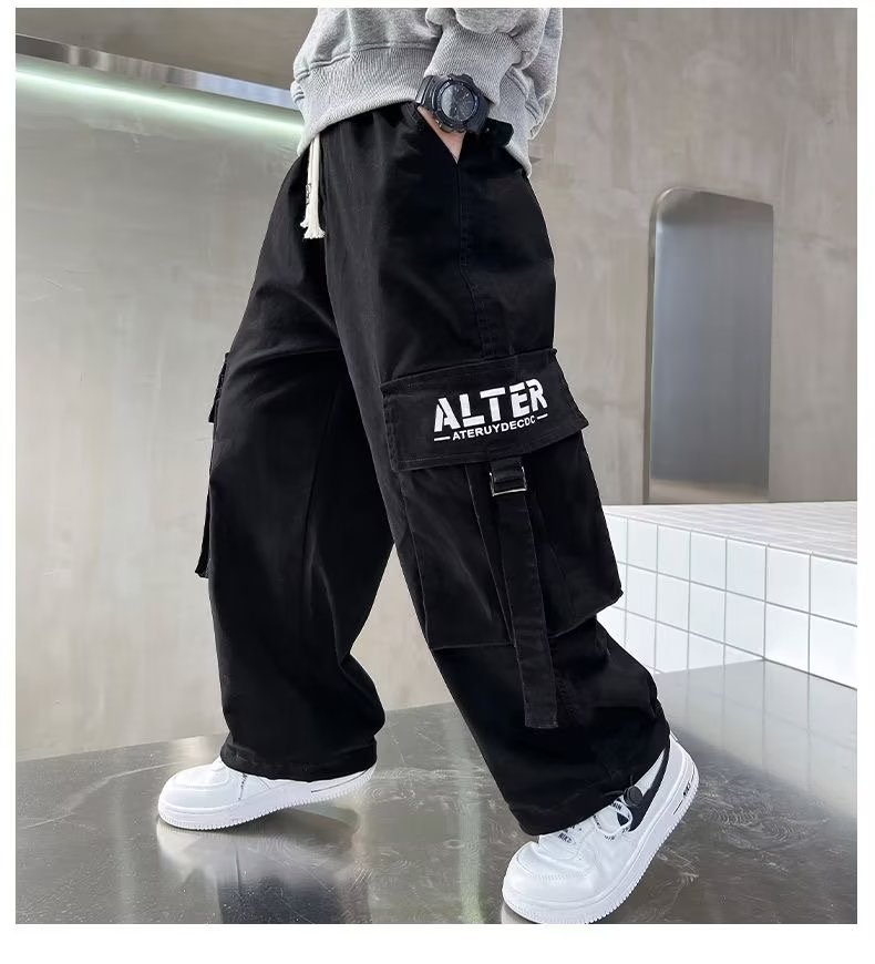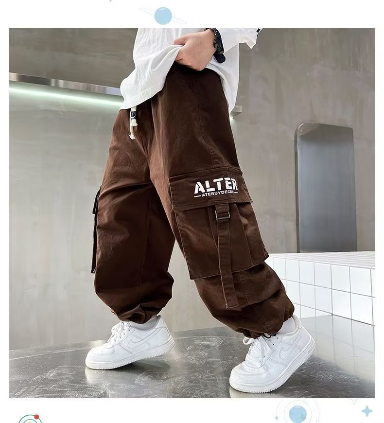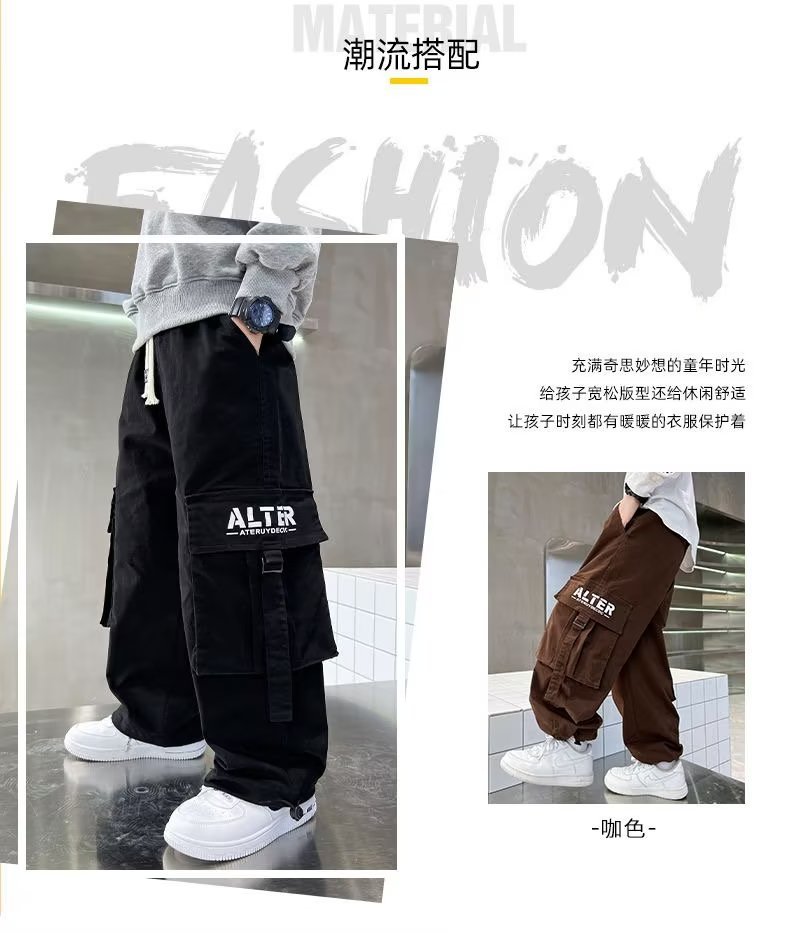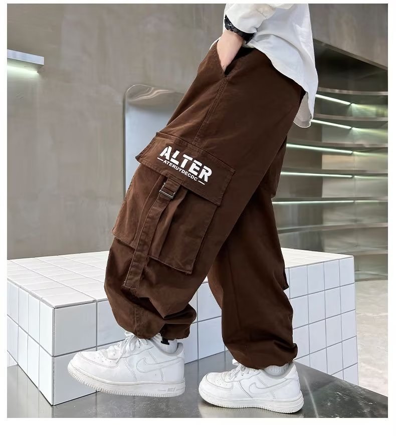 소년 캐주얼 작업복 봄, 가을 새로운 스타일 2025 가을 어린이 중대형 소년 느슨한 바지 바지 유행