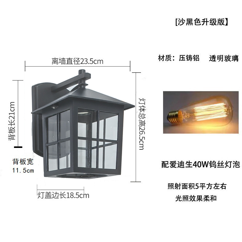 • 블랙 크로스 격자 벽 램프 + 40W 텅스텐 에디슨 전구