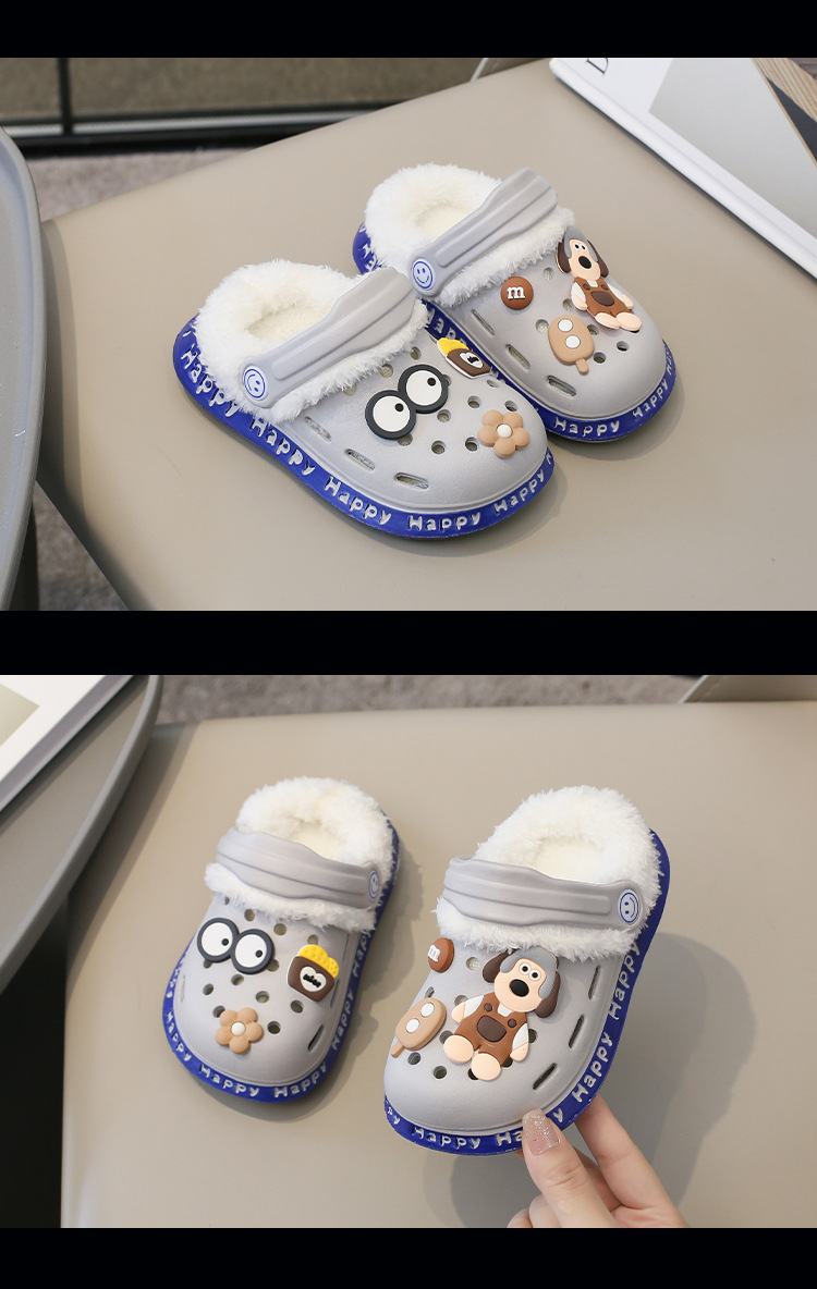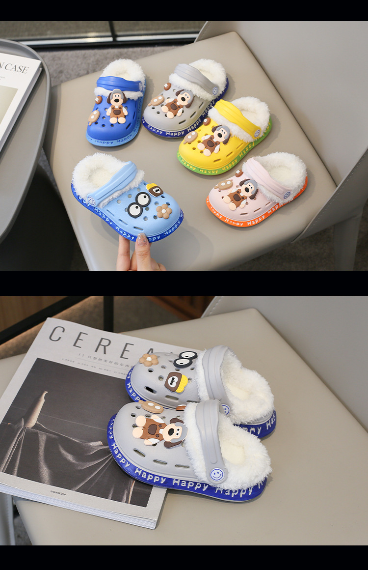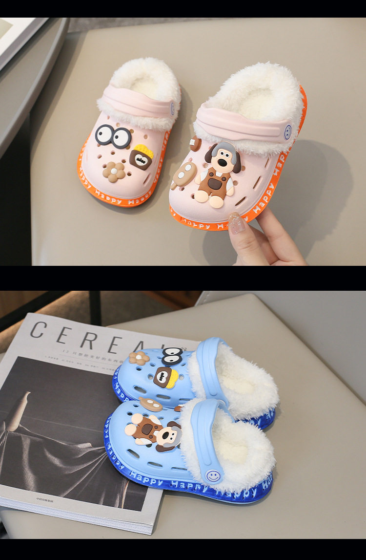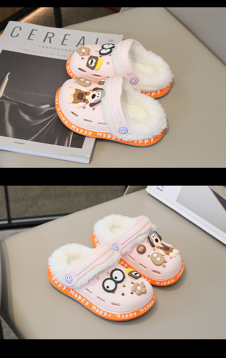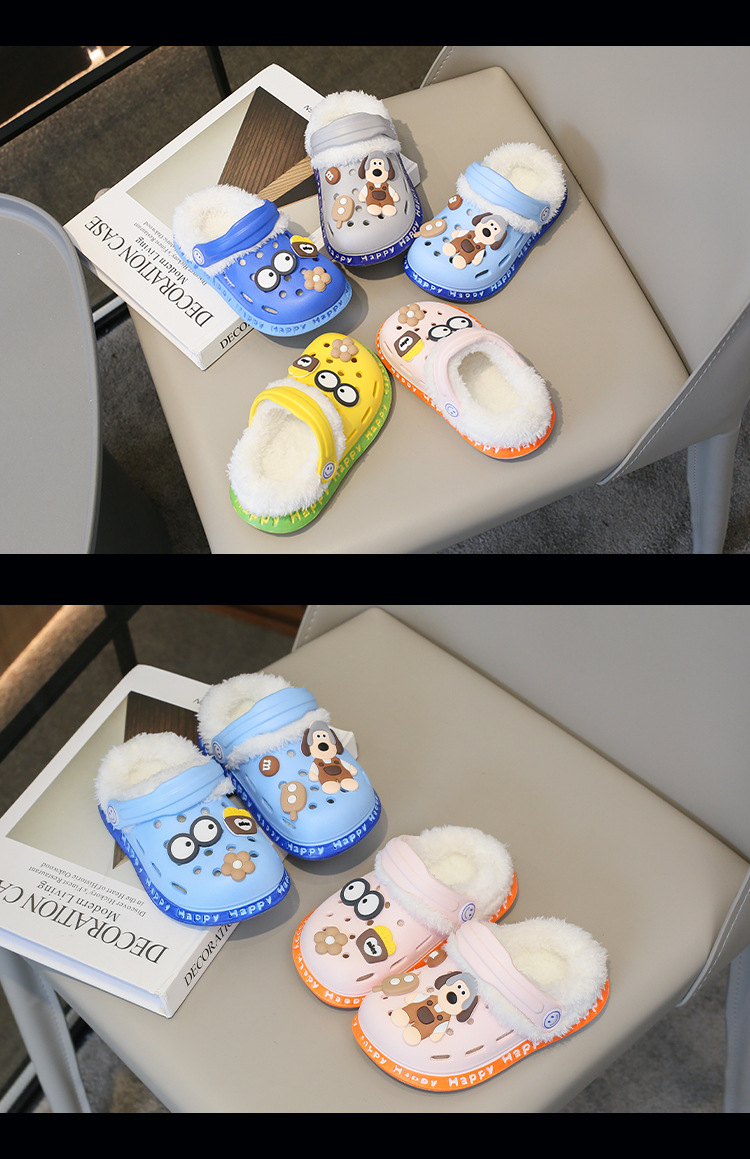 2023 분리형 기모 면 슬리퍼 남여 공용 만화 가방 발 뒤꿈치 따뜻한 겨울 실내 미끄럼 방지 어린이 동굴 신발스토어 가기
