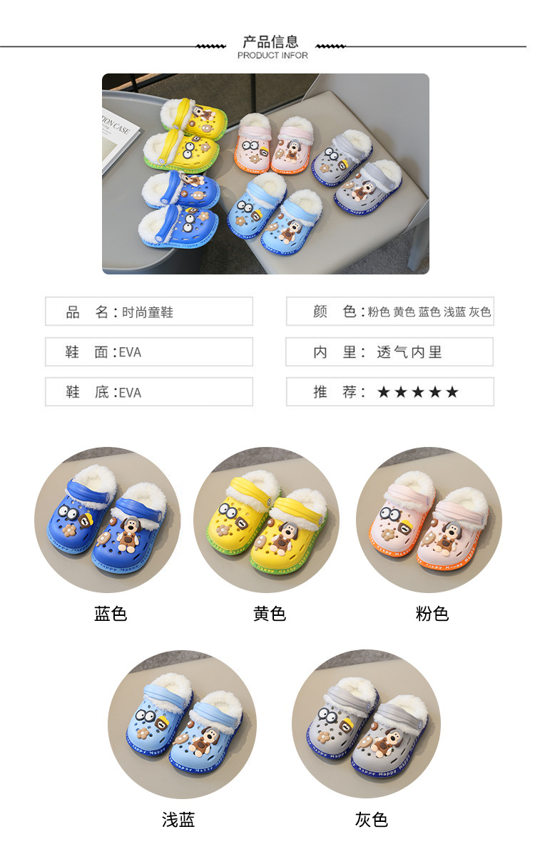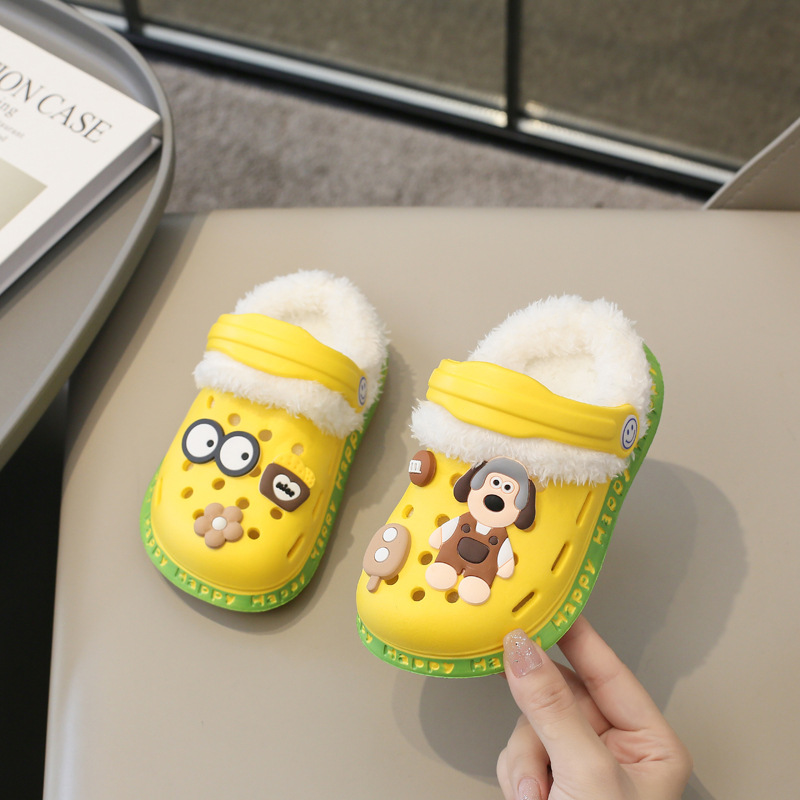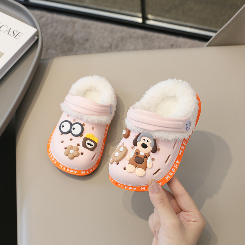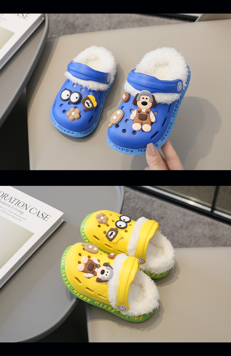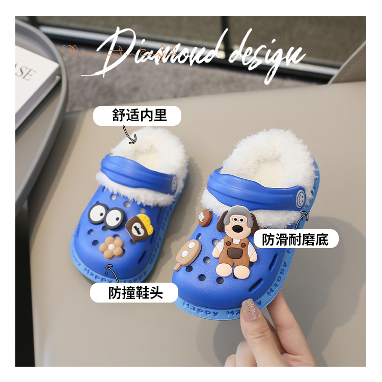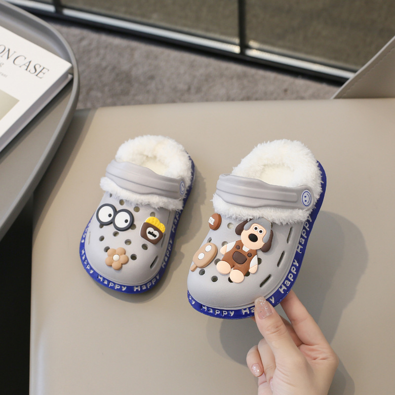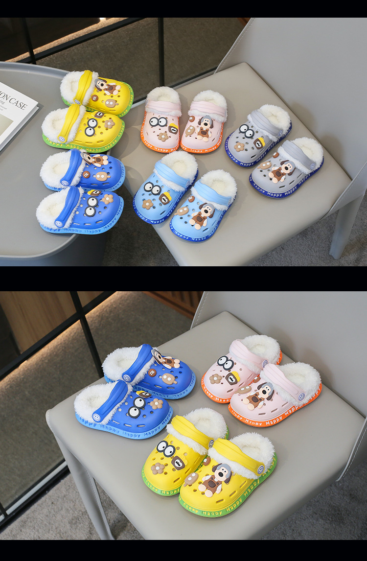 2023 분리형 기모 면 슬리퍼 남여 공용 만화 가방 발 뒤꿈치 따뜻한 겨울 실내 미끄럼 방지 어린이 동굴 신발스토어 가기