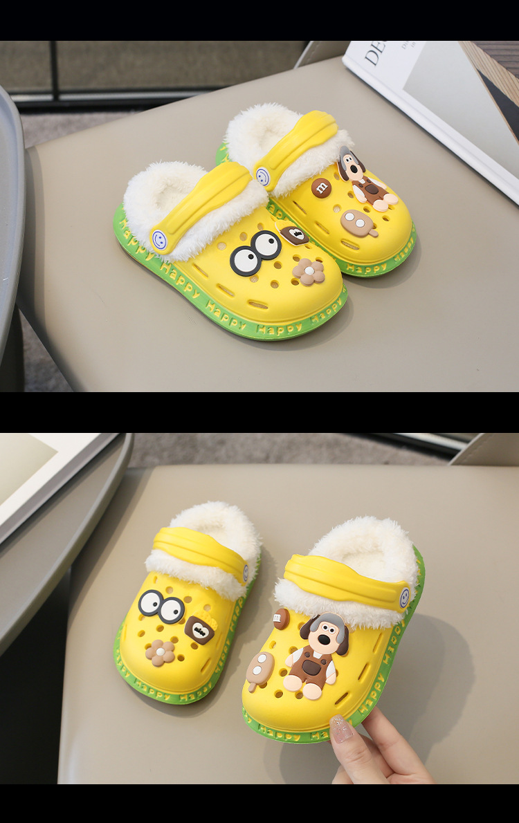 2023 분리형 기모 면 슬리퍼 남여 공용 만화 가방 발 뒤꿈치 따뜻한 겨울 실내 미끄럼 방지 어린이 동굴 신발