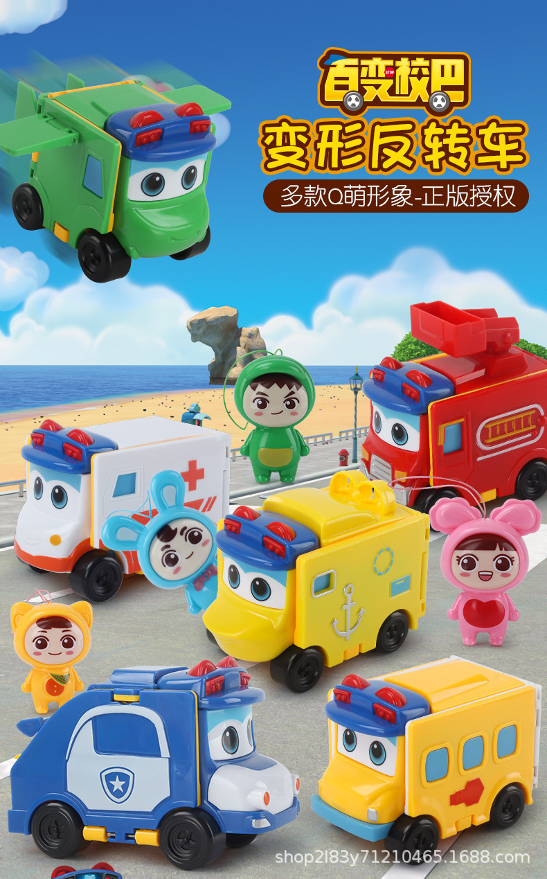 정품 괴테 변형 학교 버스 장난감 자동차 반전 변형 반전 변형 자동차 어린이 장난감 만화 학교 버스 남성스토어 가기