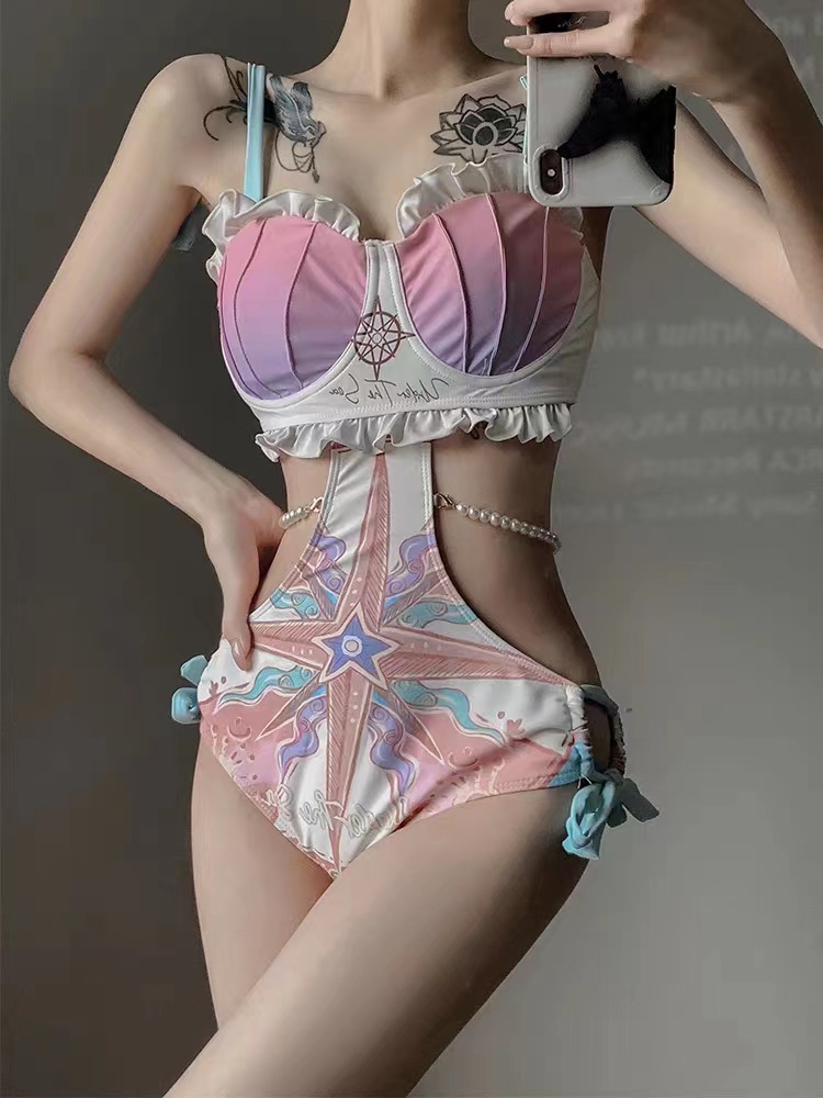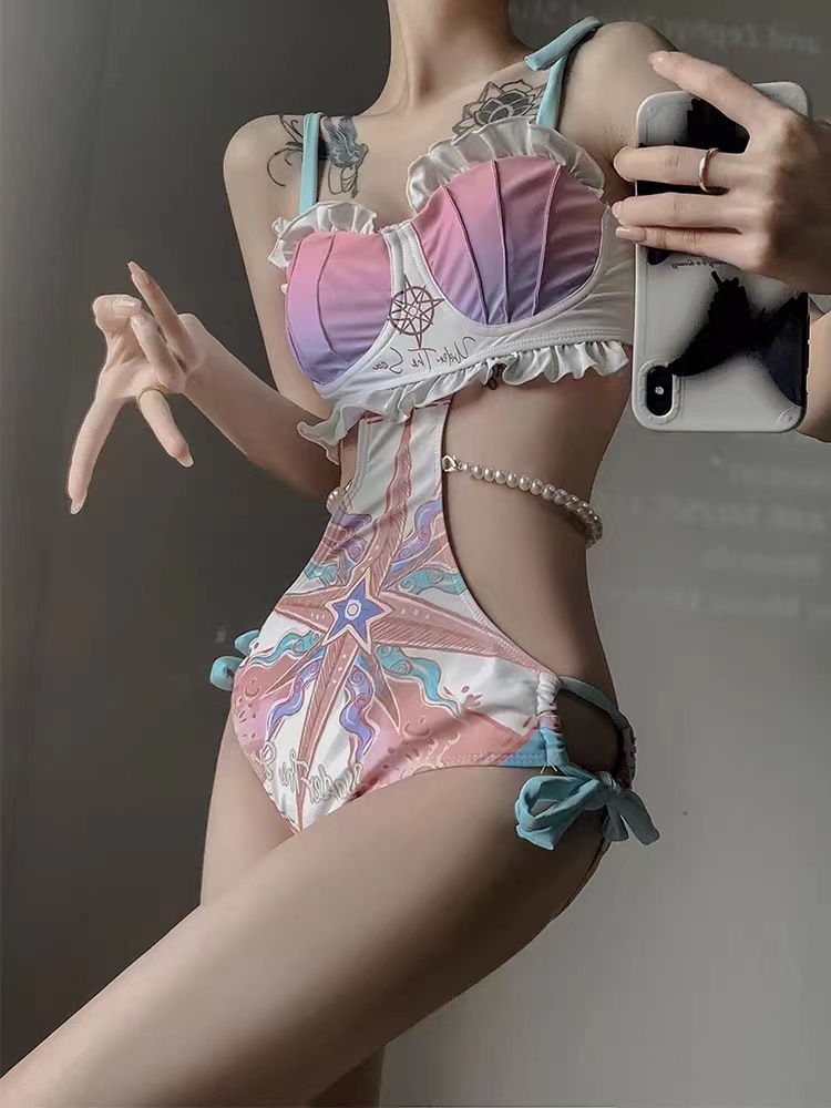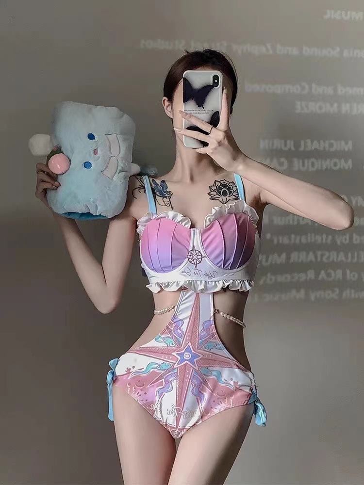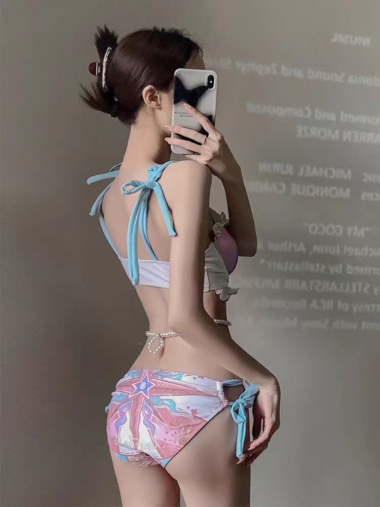 수영복 여성용 2023 새로운 비키니 섹시 스플릿 순수한 욕망 고급 고기 덮음 인터넷 인기있는 스타일 작은 가슴 수집 인어