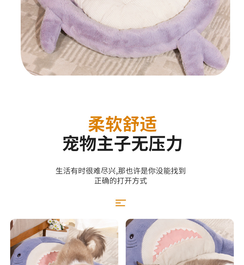 2024 상어 수면 매트 침대 개 개집 고양이 개집 편안한 가을, 겨울 따뜻하고 두꺼운 애완 동물 개집 작은 개를위한 긁힘 방지스토어 가기