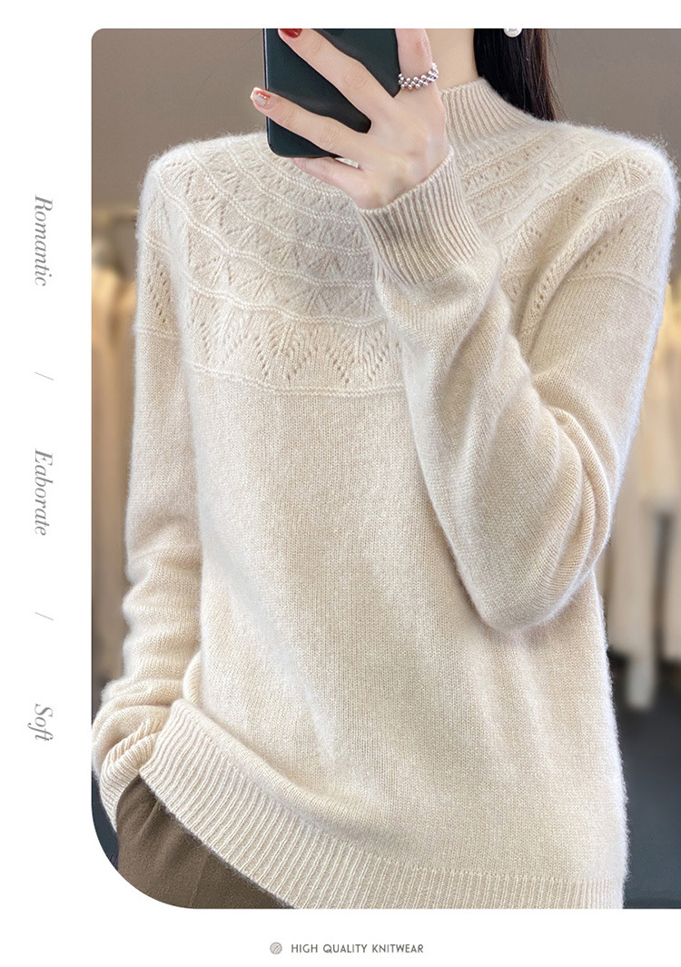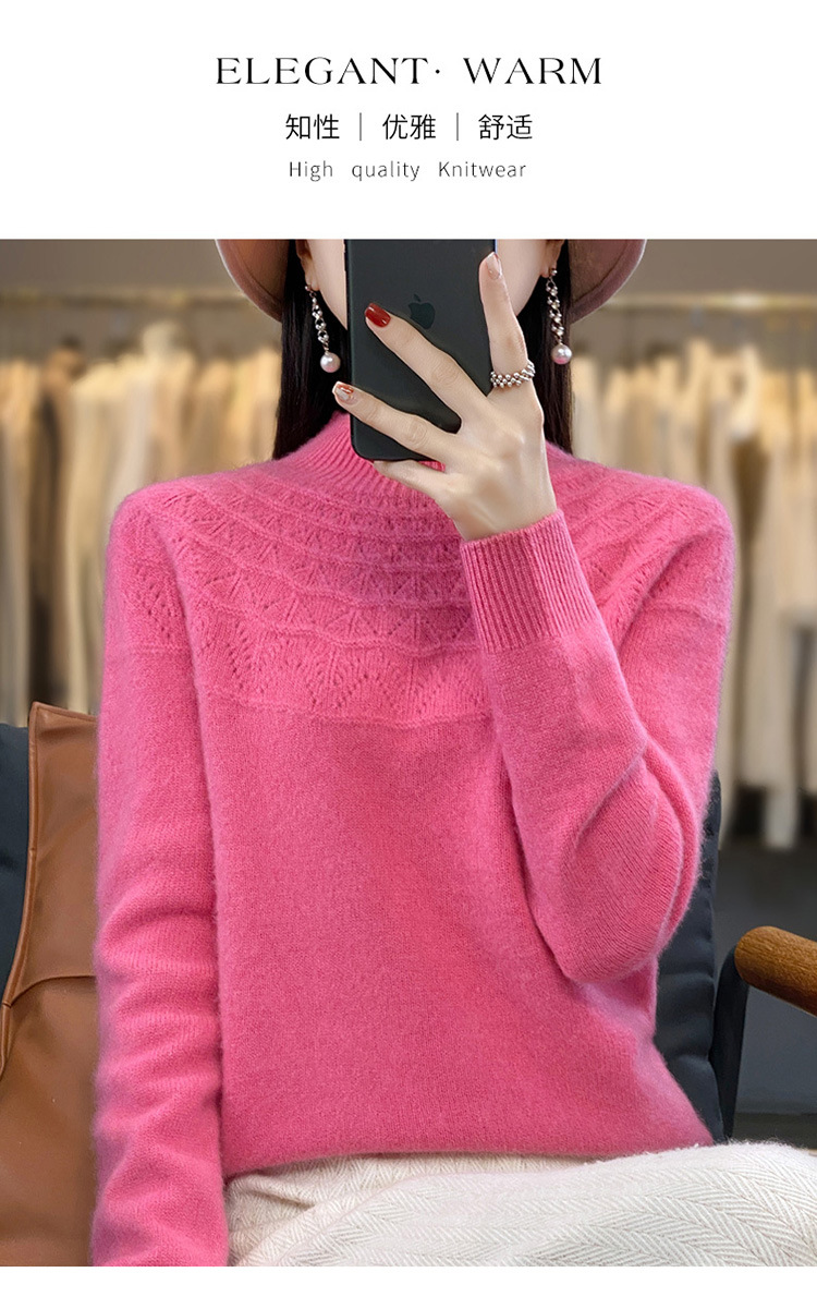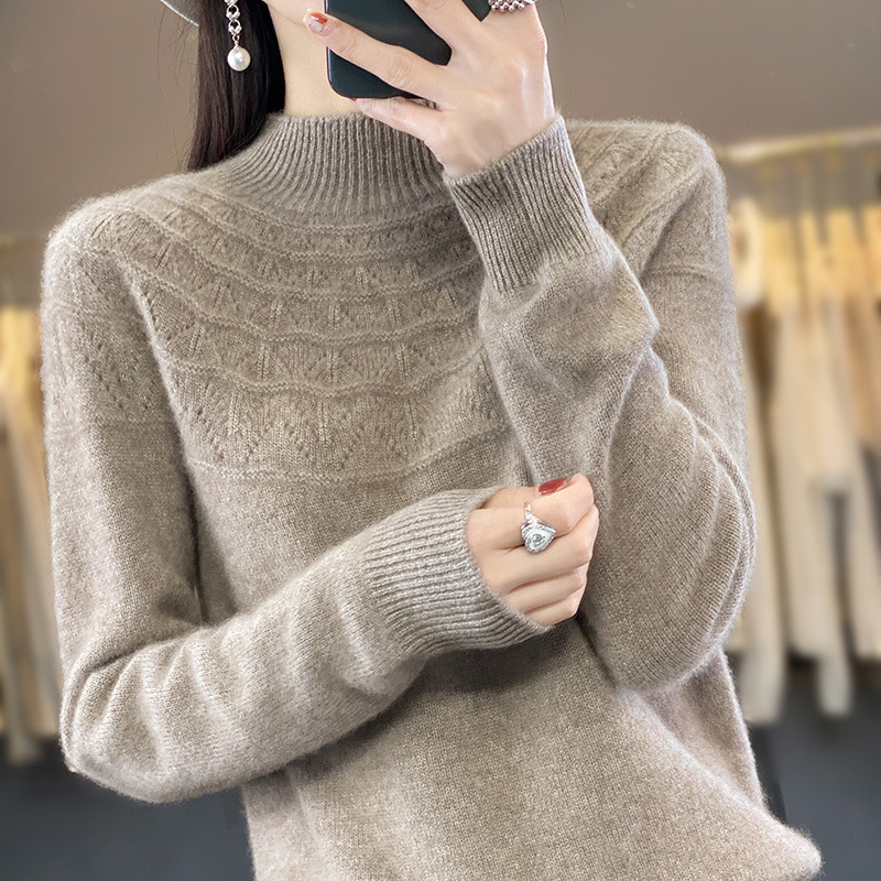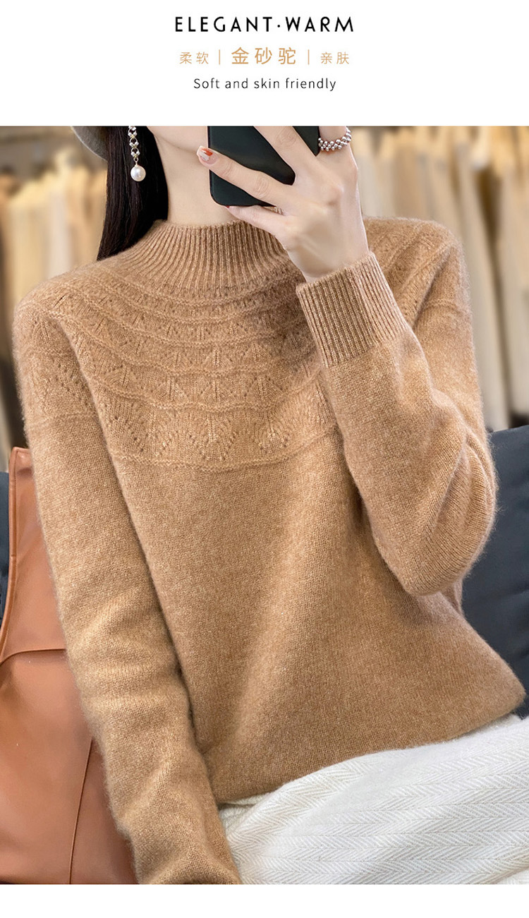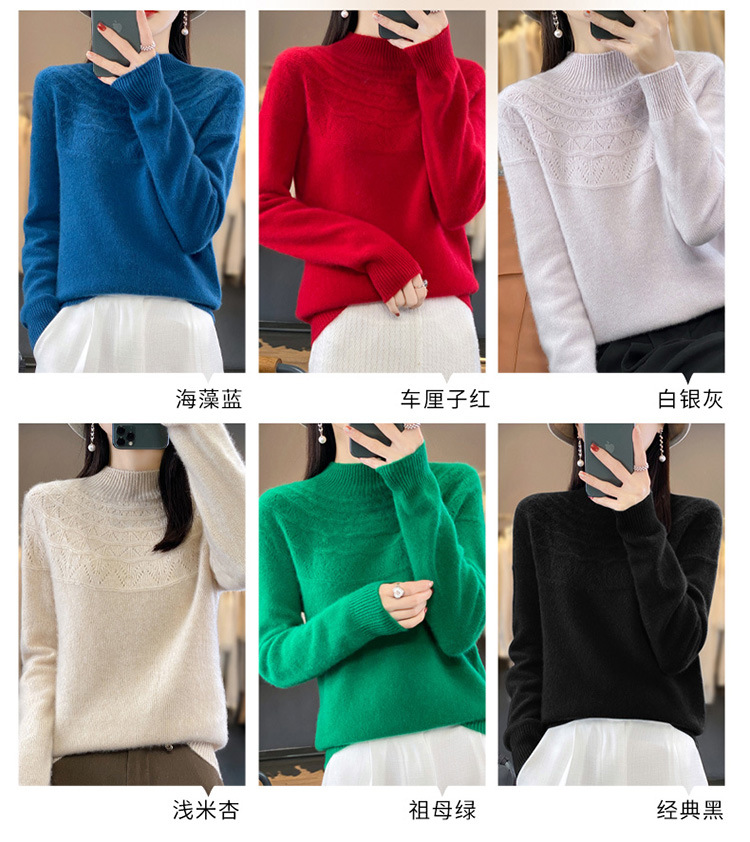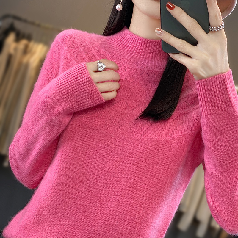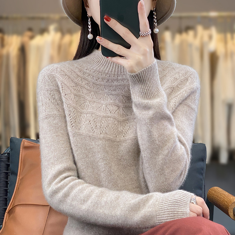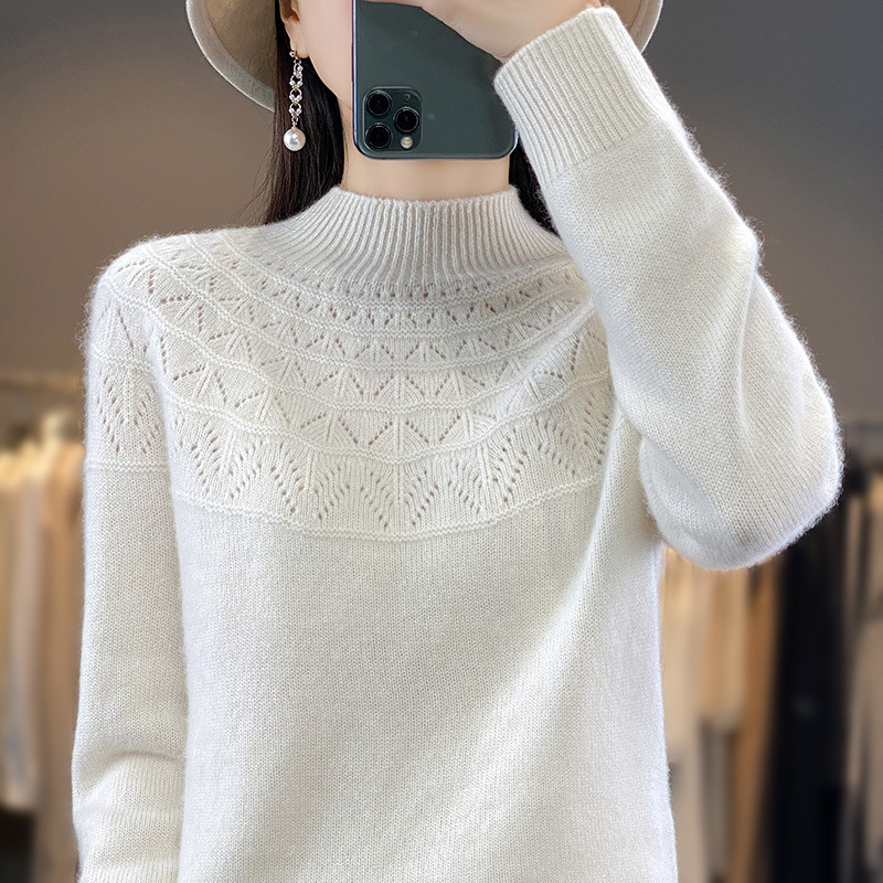 가을과 겨울 신상품 기성품 의류 중공 하프 터틀넥 여성용 긴팔 스웨터 느슨한 슬리밍베이스 풀오버 스웨터