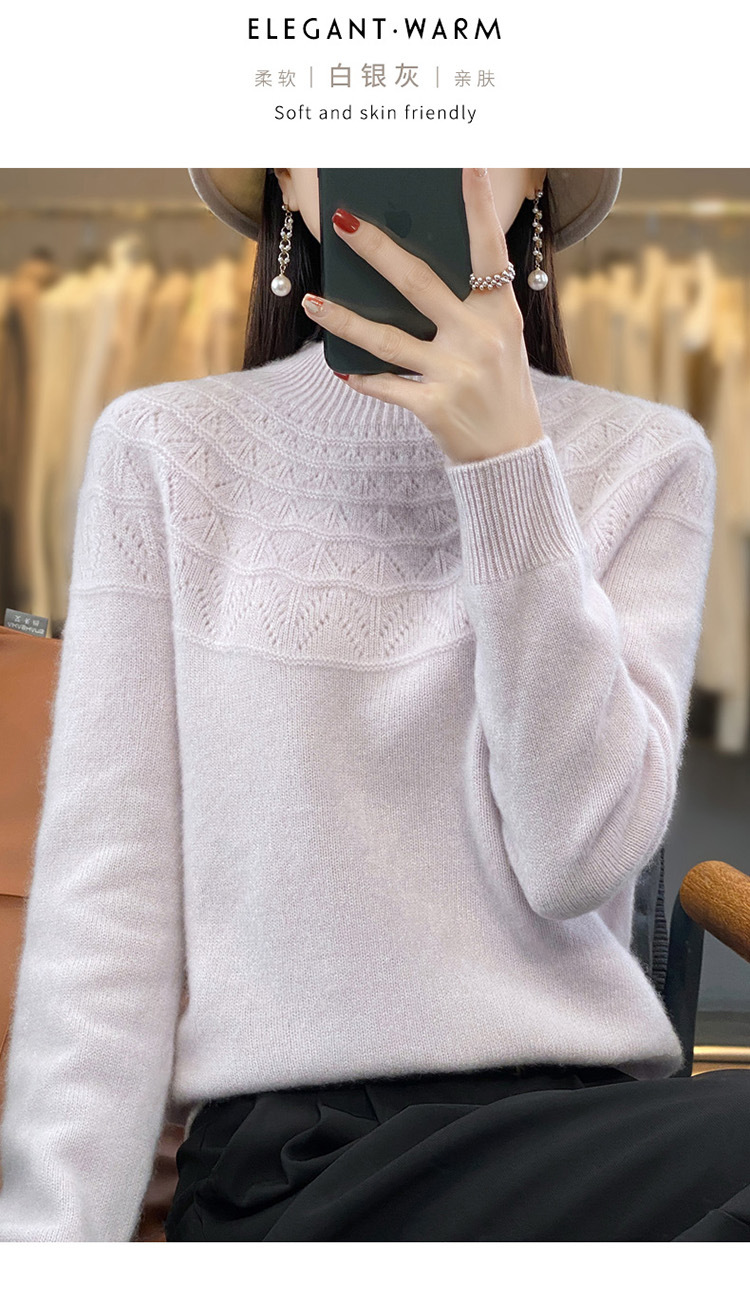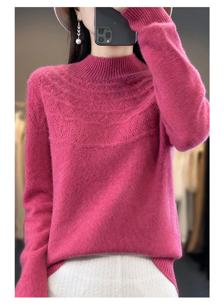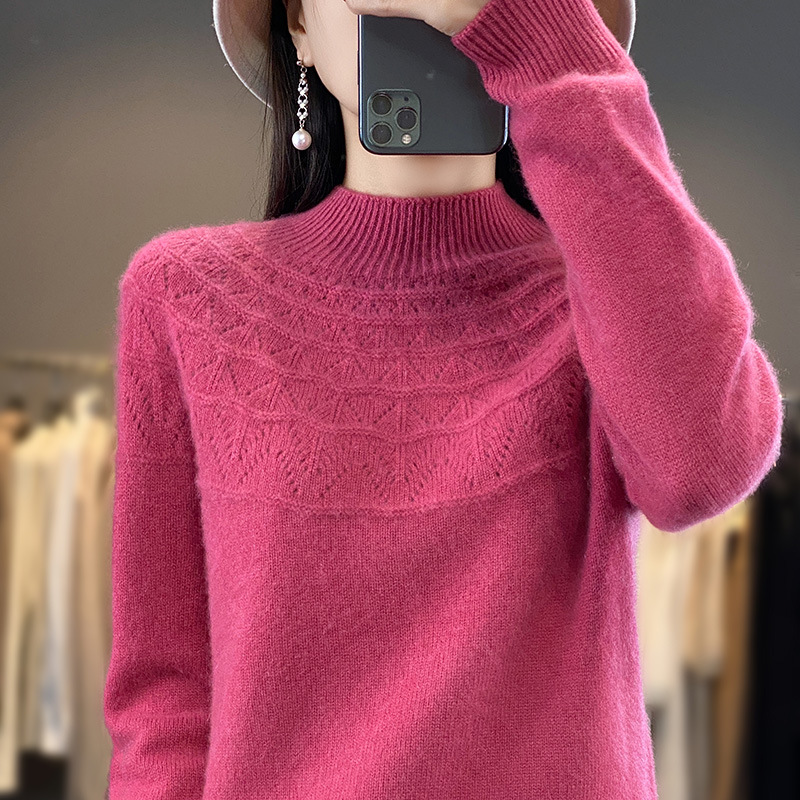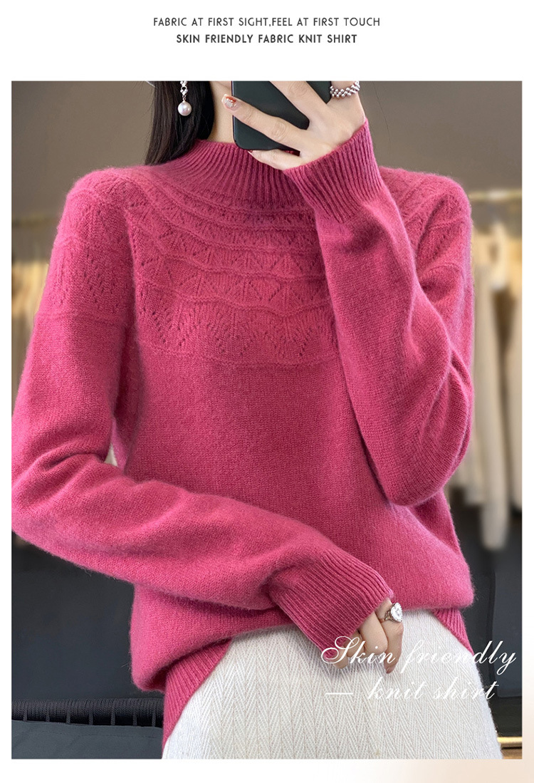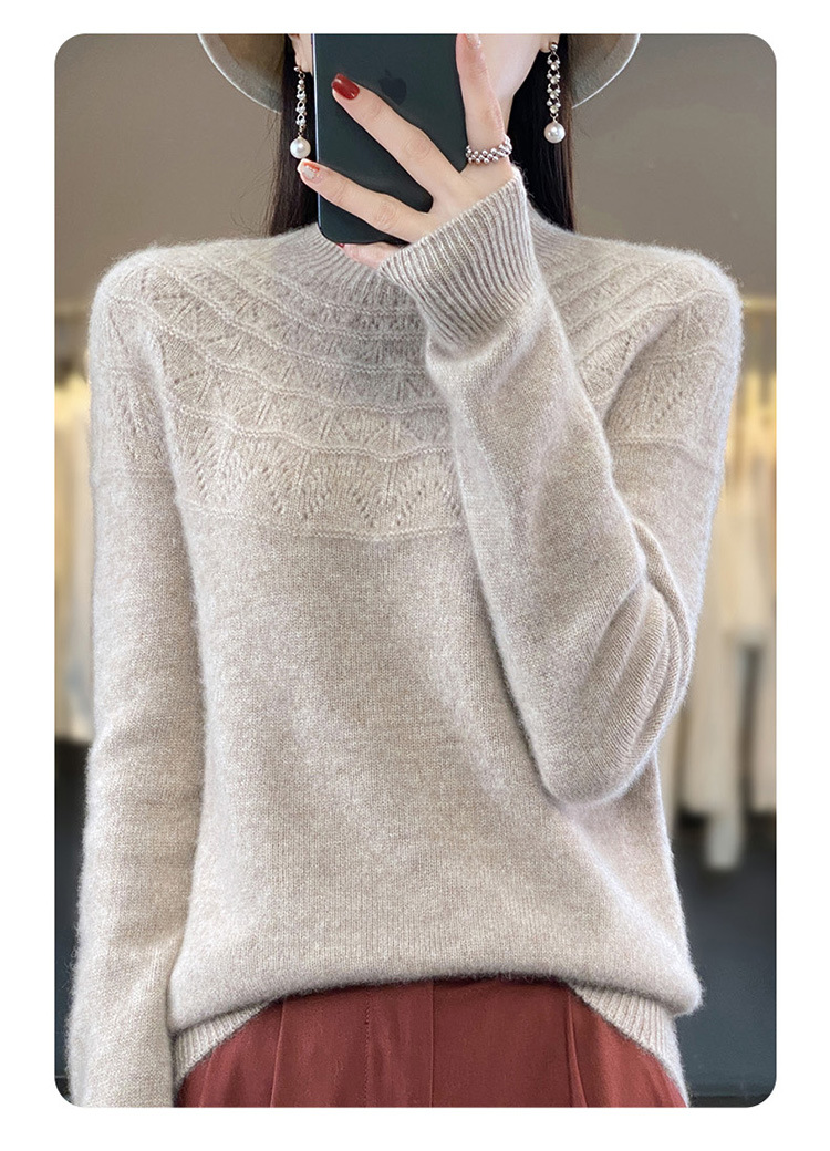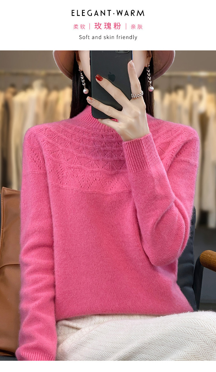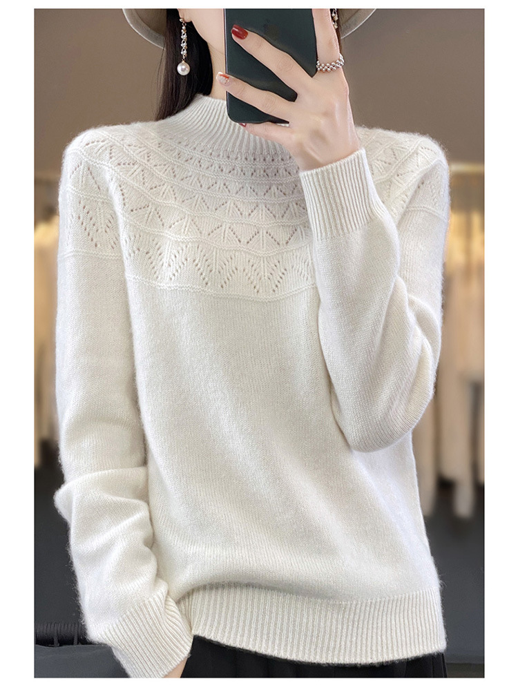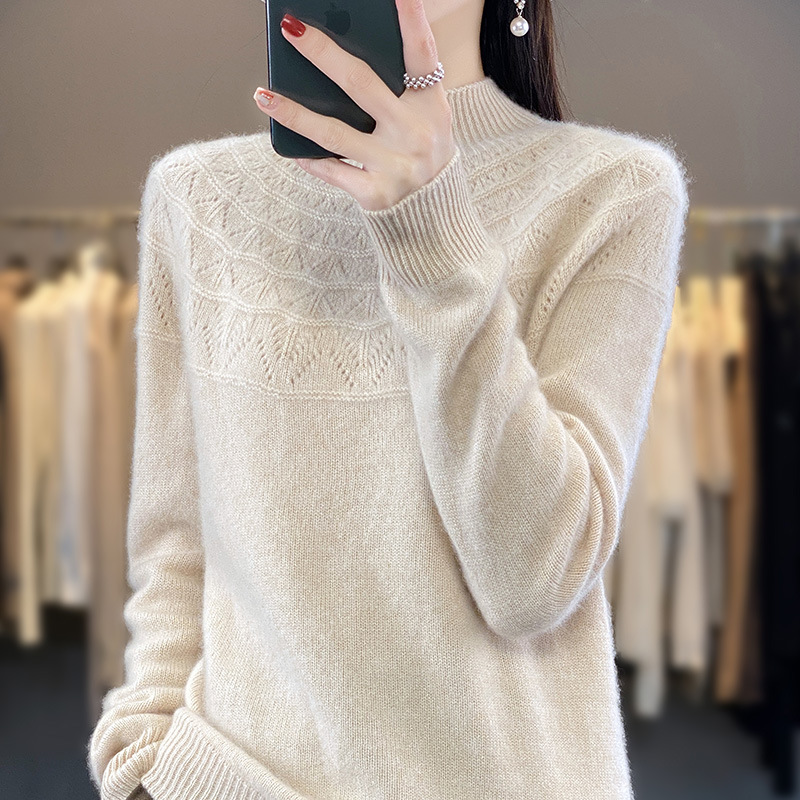 가을과 겨울 신상품 기성품 의류 중공 하프 터틀넥 여성용 긴팔 스웨터 느슨한 슬리밍베이스 풀오버 스웨터