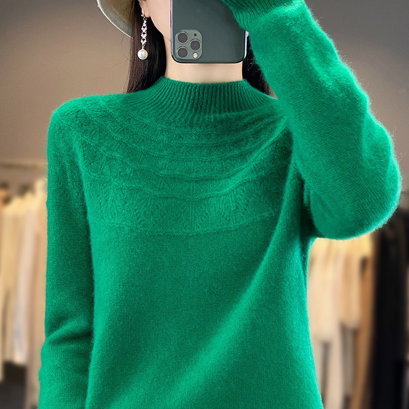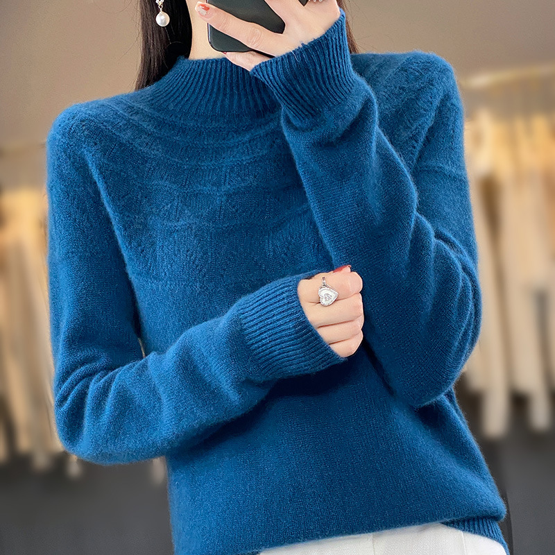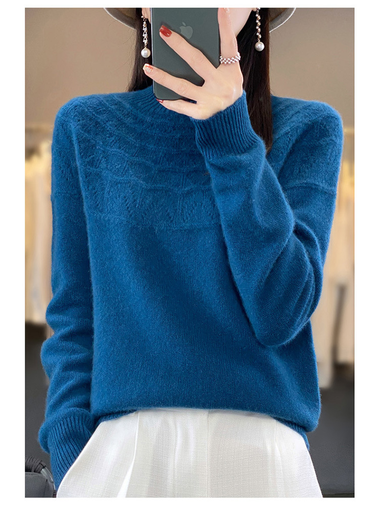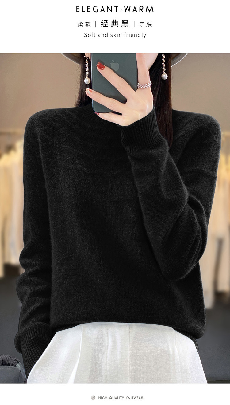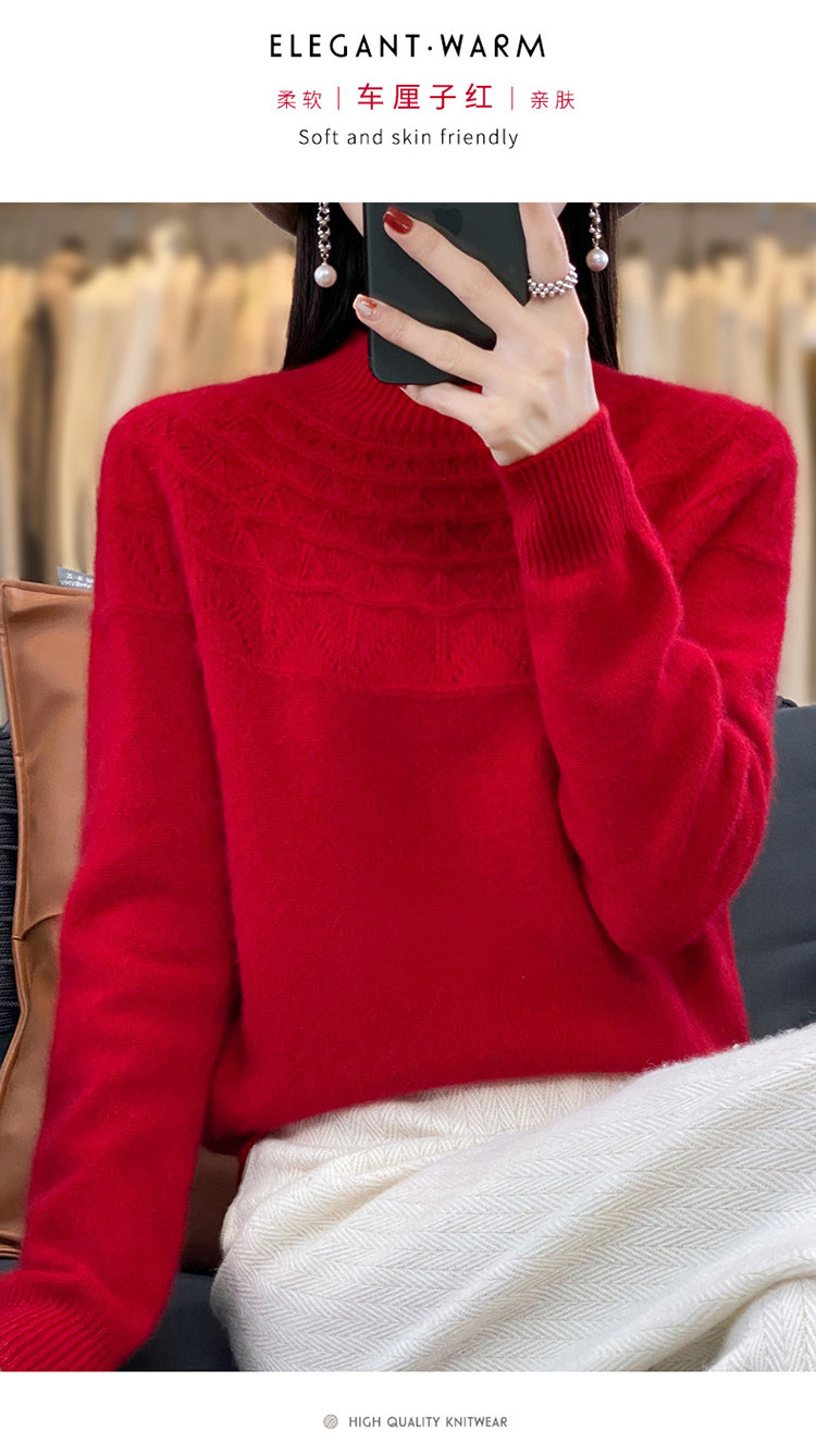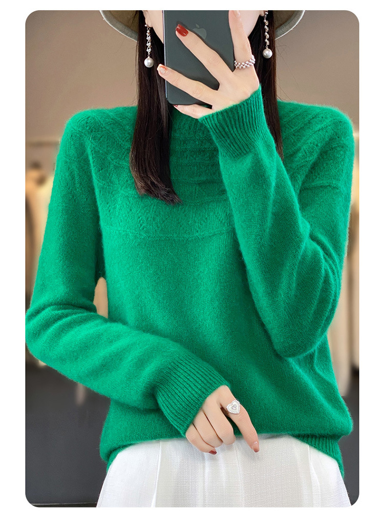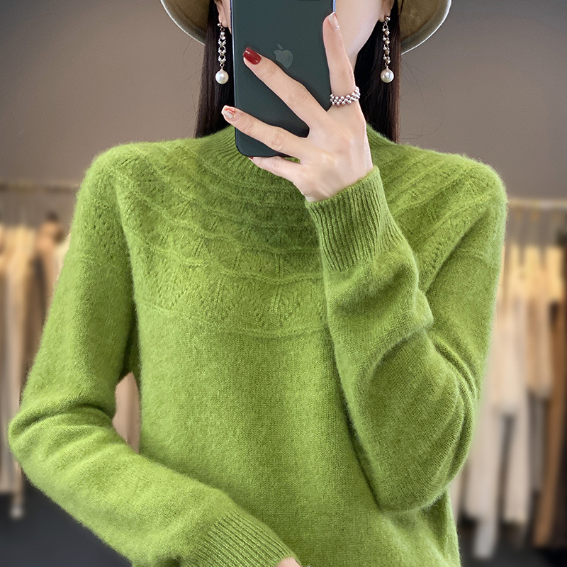 가을과 겨울 신상품 기성품 의류 중공 하프 터틀넥 여성용 긴팔 스웨터 느슨한 슬리밍베이스 풀오버 스웨터