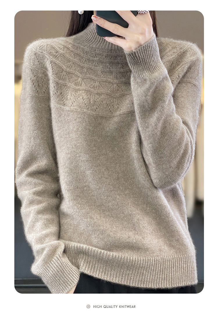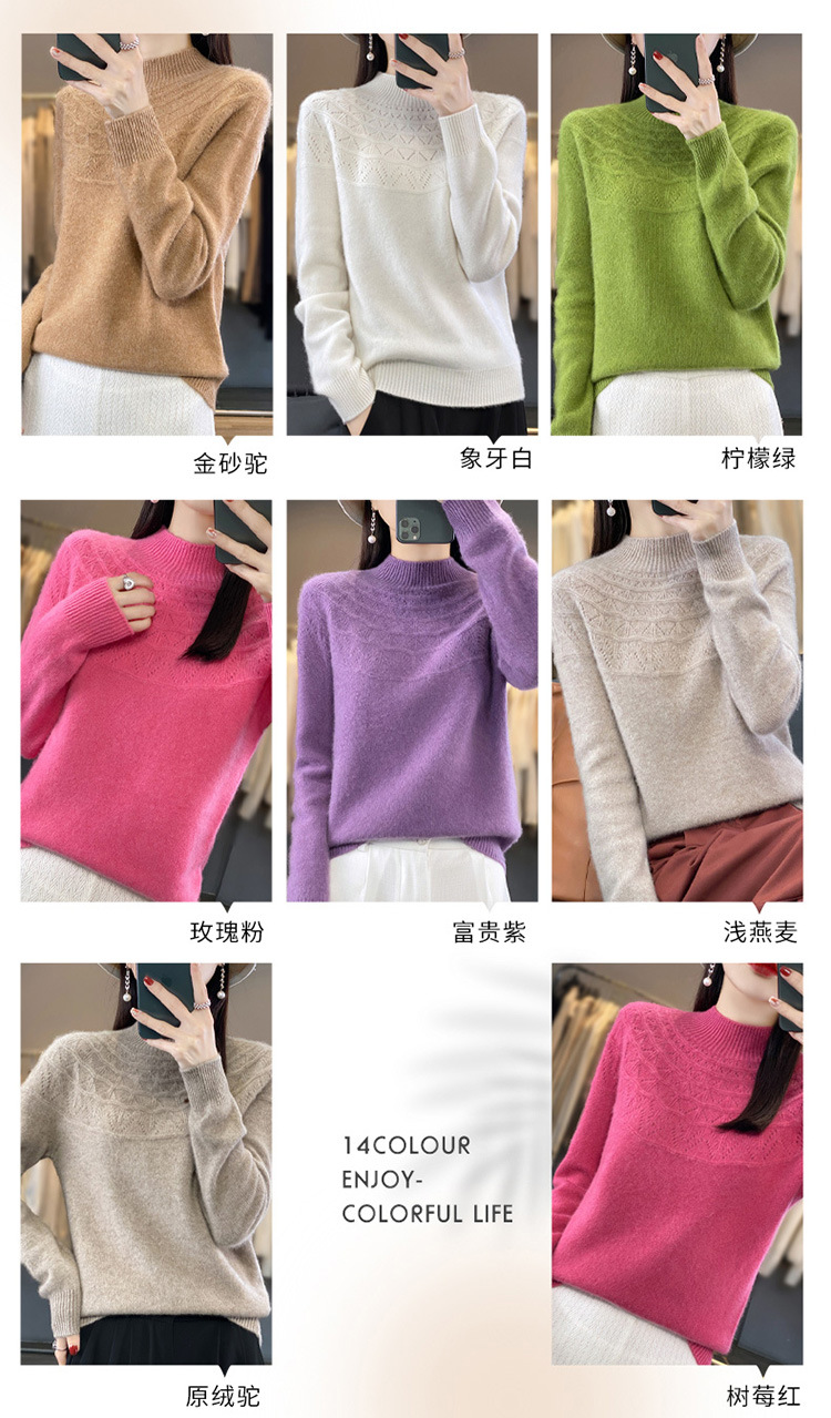 가을과 겨울 신상품 기성품 의류 중공 하프 터틀넥 여성용 긴팔 스웨터 느슨한 슬리밍베이스 풀오버 스웨터스토어 가기