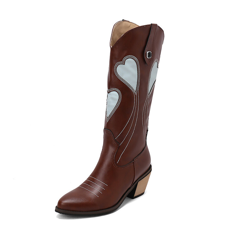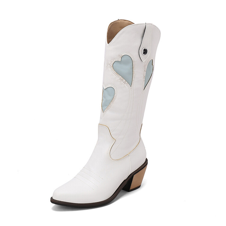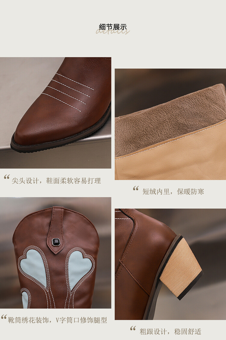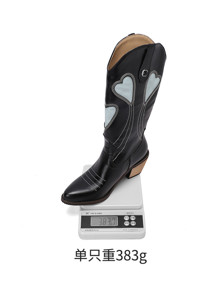 2023 가을과 겨울 뉴 나이트 부츠 복숭아 하트 스티치 뾰족한 두꺼운 뒤꿈치 하이 부츠 33-43 여성용 대형 신발스토어 가기