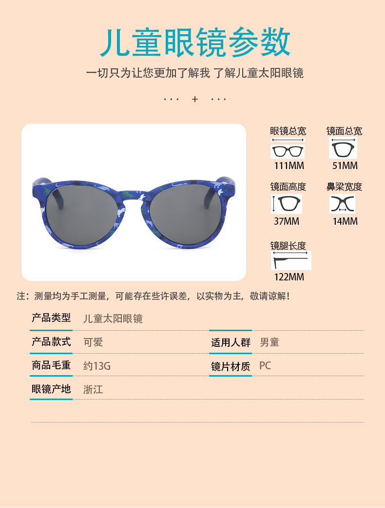 공룡 선글라스 남녀공용 자외선 차단 선글라스 UV400 작은 공룡 만화 어린이용