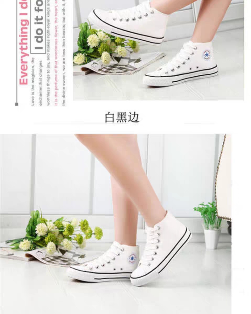 남녀 커플을 위한 하이탑 캔버스 슈즈, 한국판 다용도 캐주얼 슈즈, 싱글 슈즈, 화이트 슈즈, 클래식 다용도 슈즈 D02