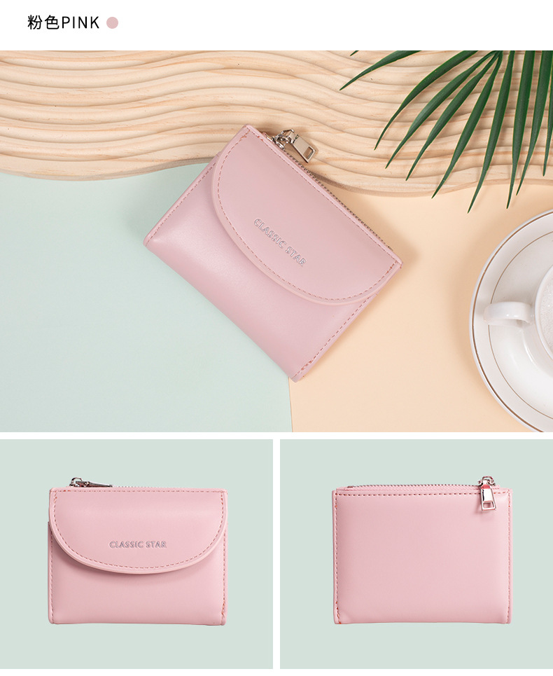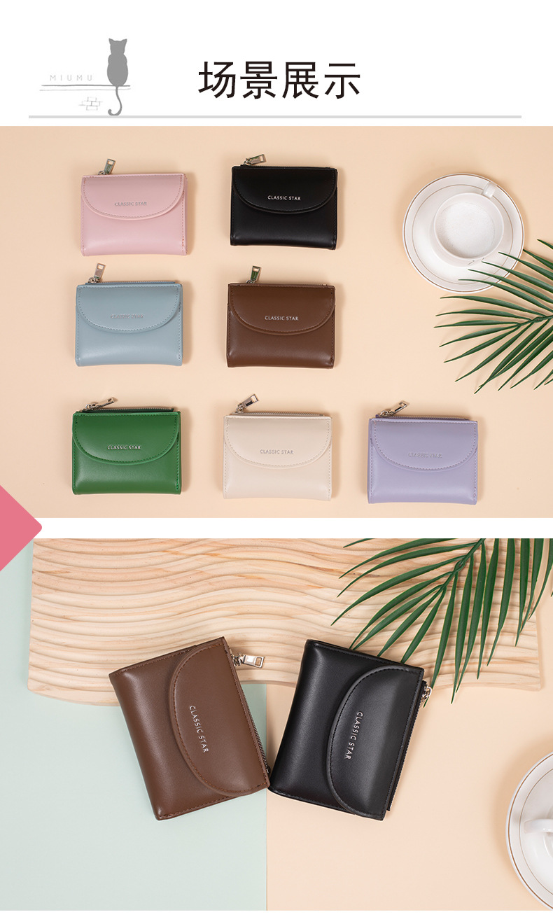 한국 스타일 크로스보더 지갑 여성용 동전 지갑 단색 심플 소녀 다기능 대용량 카드 지갑 인스 스타일스토어 가기