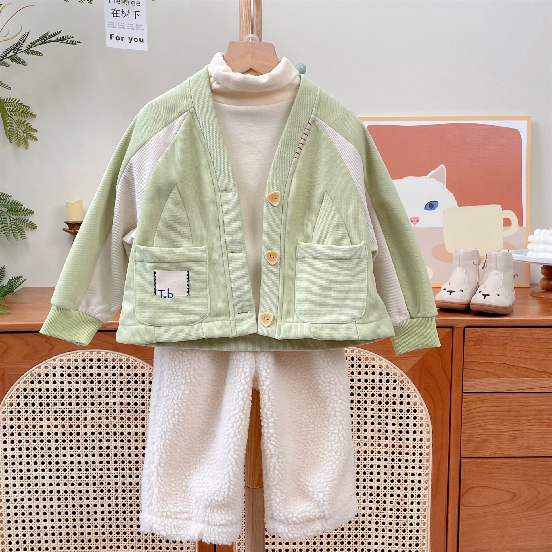 재고 (TB 소년 소녀) 한국 유행 스티치 코듀로이 코트 어린이 가을과 겨울 캐주얼 느슨한 재킷 카디건