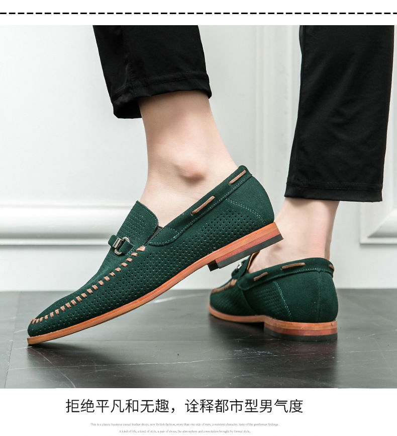 크로스 보더 플러스 사이즈 비즈니스 로퍼 펀치 통기성 잎이 많은 가죽 신발 남자의 영국 원피스 게으른 가죽 신발스토어 가기