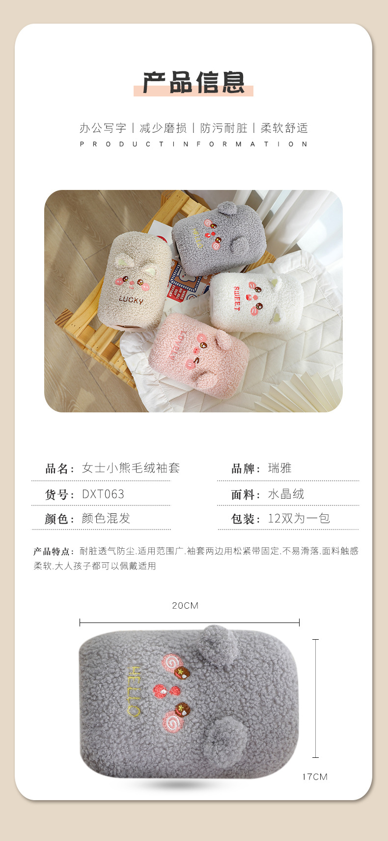 남학생과 여학생을 위한 다운 재킷 가을 겨울 슬리브, 더러운 방지 슬리브, 세련된 테디 벨벳 사무용 특수 짧은 슬리브