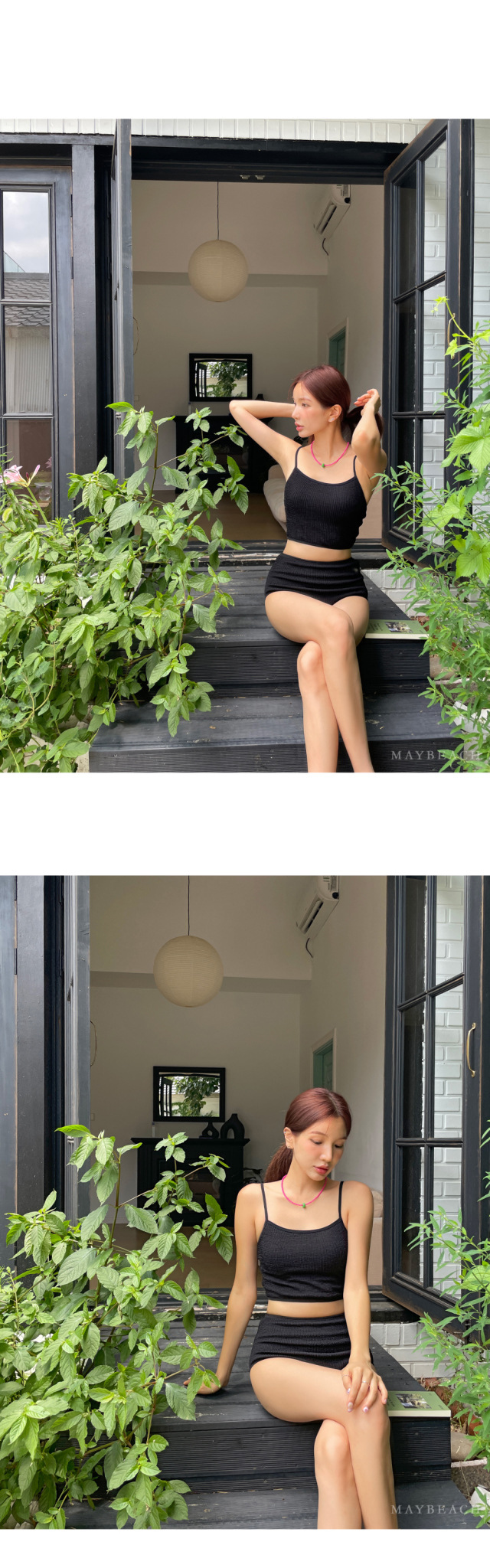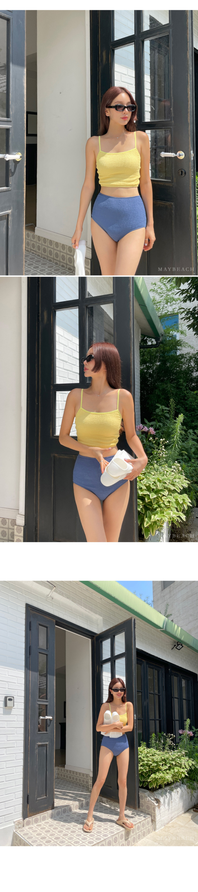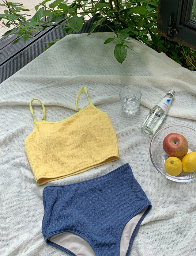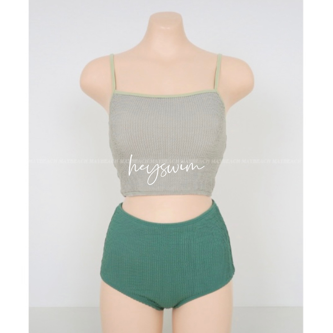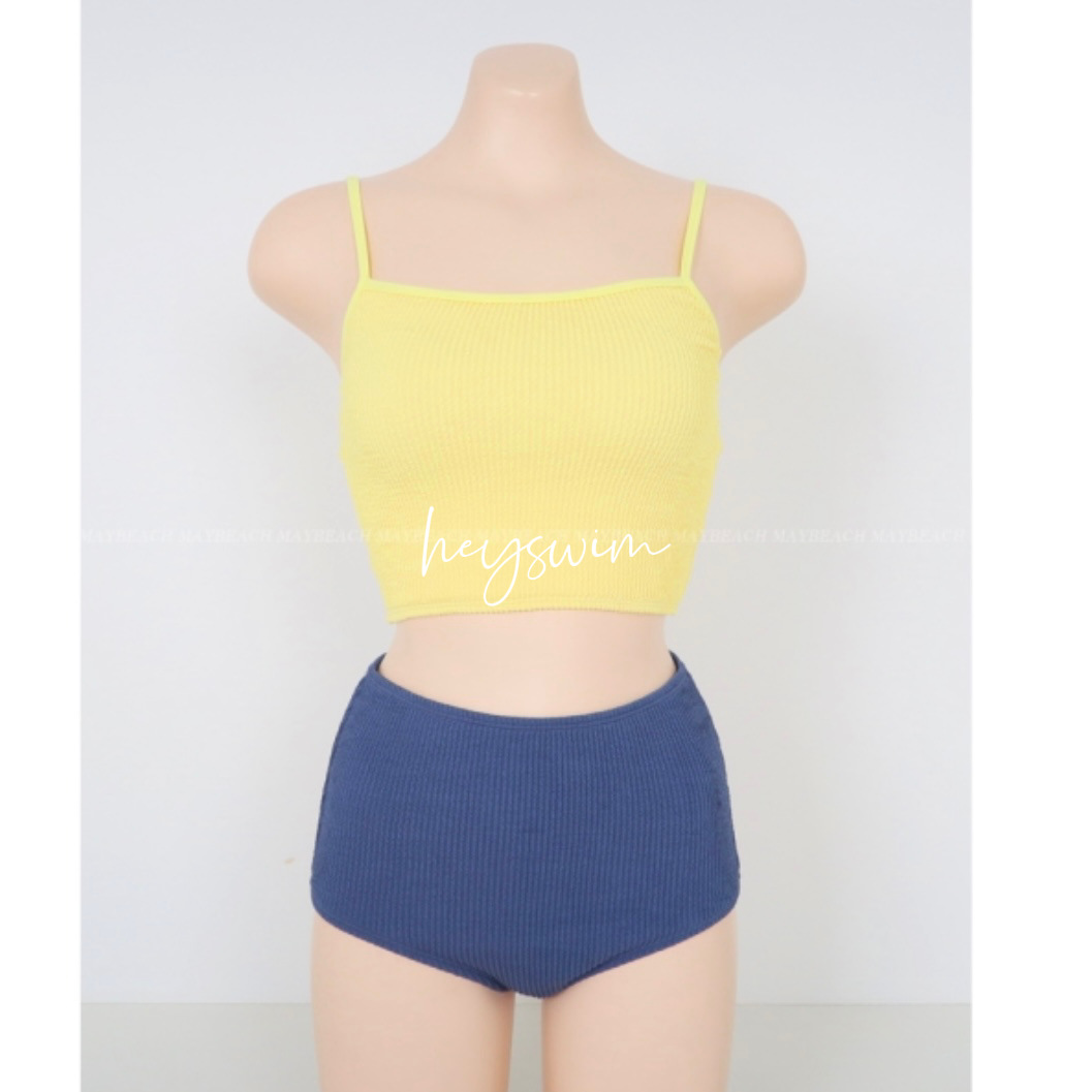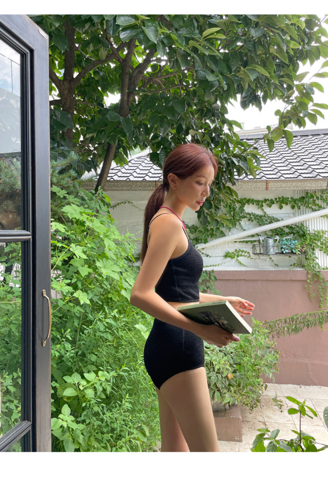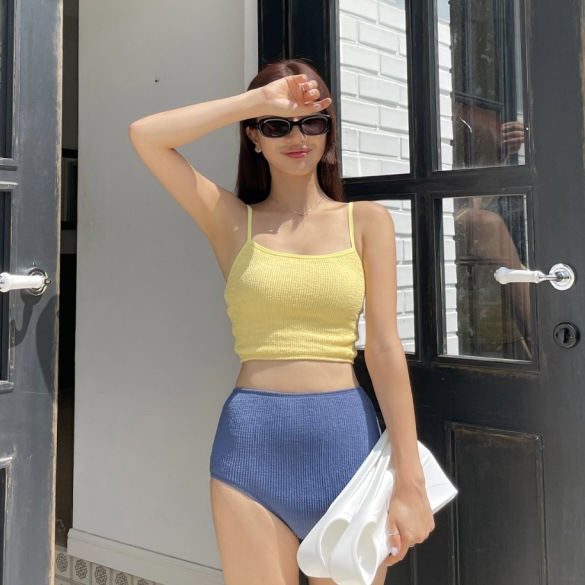 23 신상 인스 스타일 배색 끈탑 심플 하이웨이스트 투피스 수영복 여성 휴가 온천 비키니 수영복