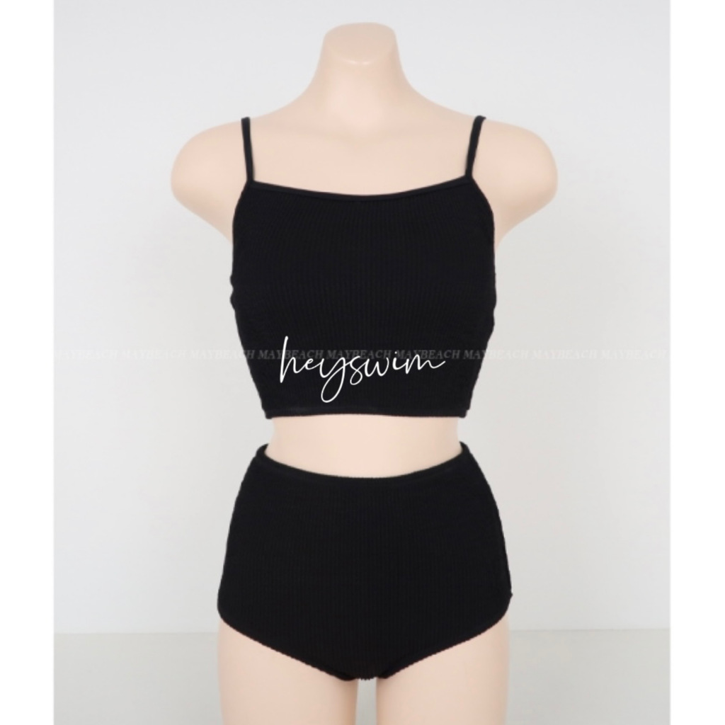 23 신상 인스 스타일 배색 끈탑 심플 하이웨이스트 투피스 수영복 여성 휴가 온천 비키니 수영복스토어 가기