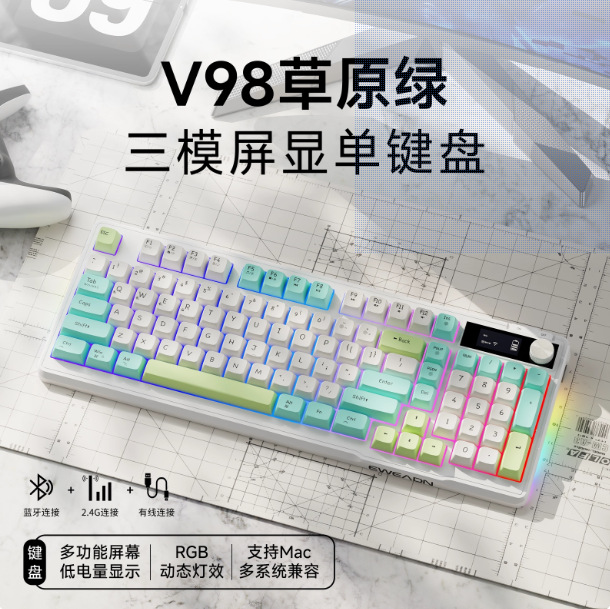 • V98 프레리 그린 무선 3모드 화면 디스플레이 [전원 디스플레이 + RGB 조명 효과]