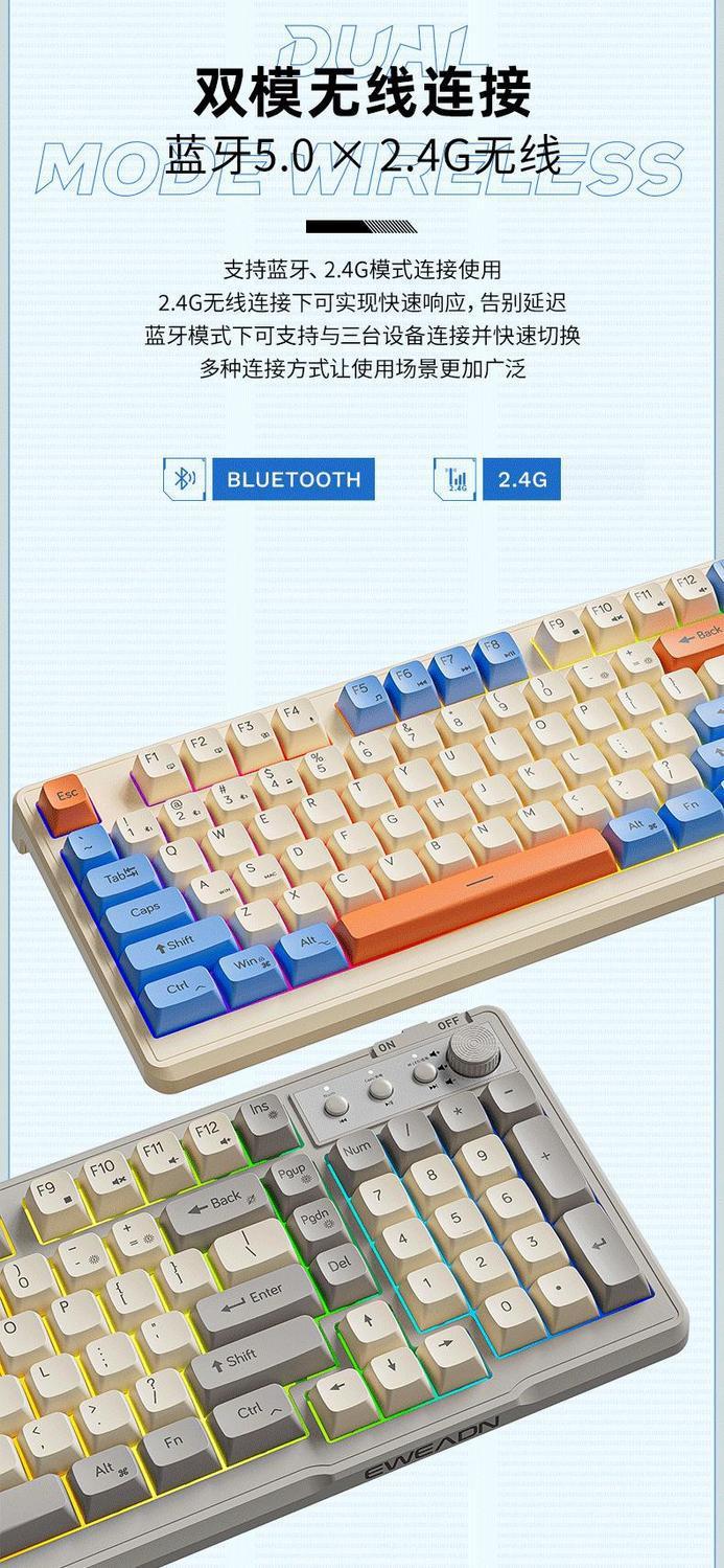• 먼지 측면 각인 [RGB 버전] Bluetooth 듀얼 모드 키보드 - 다기능 손잡이