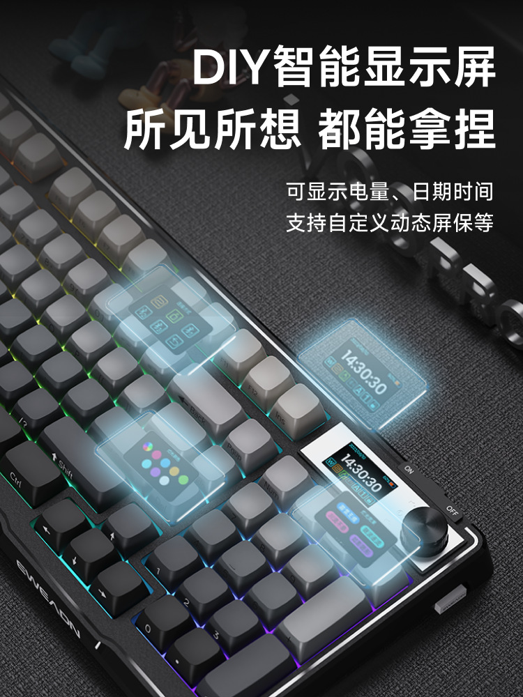 • 먼지 측면 각인 플래그십 버전 [RGB] Bluetooth 3모드 키보드-DIY 디스플레이-다기능 손잡이