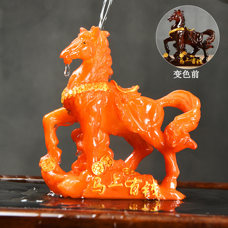 크리 에이 티브 행운의 말 차 애완 동물 장식품 급수 색상 변경 부티크는 다도 차 세트 차 놀이 액세서리 차 테이블 장식을 올릴 수 있습니다