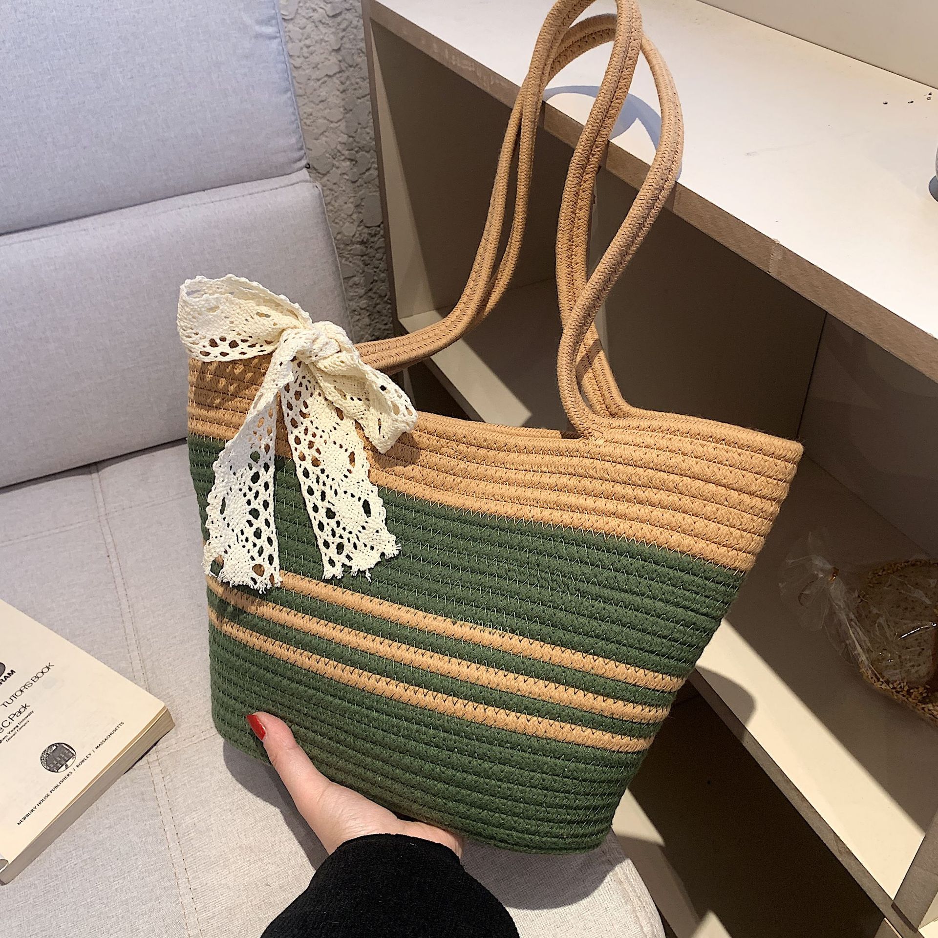 패션 손으로 짠 비치 백 대용량 가방 숄더백 빈티지 여성용 핸드백 여행 모든 경기 여성용 가방스토어 가기