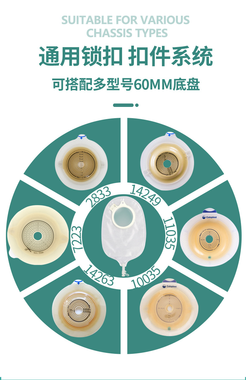 Nianqing Ostomy 포켓 투피스 요로 트랙 잠금 60mm 패스너 피트 Kangle Bao 2833 섀시 1759 백스토어 가기