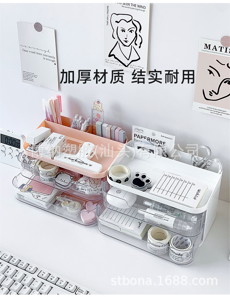 데스크탑 보관함 아크릴 투명 책상 문구 펜 홀더 서랍 랙 사무실 마무리 상자스토어 가기