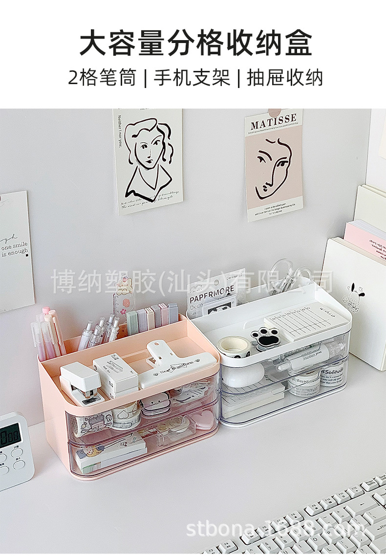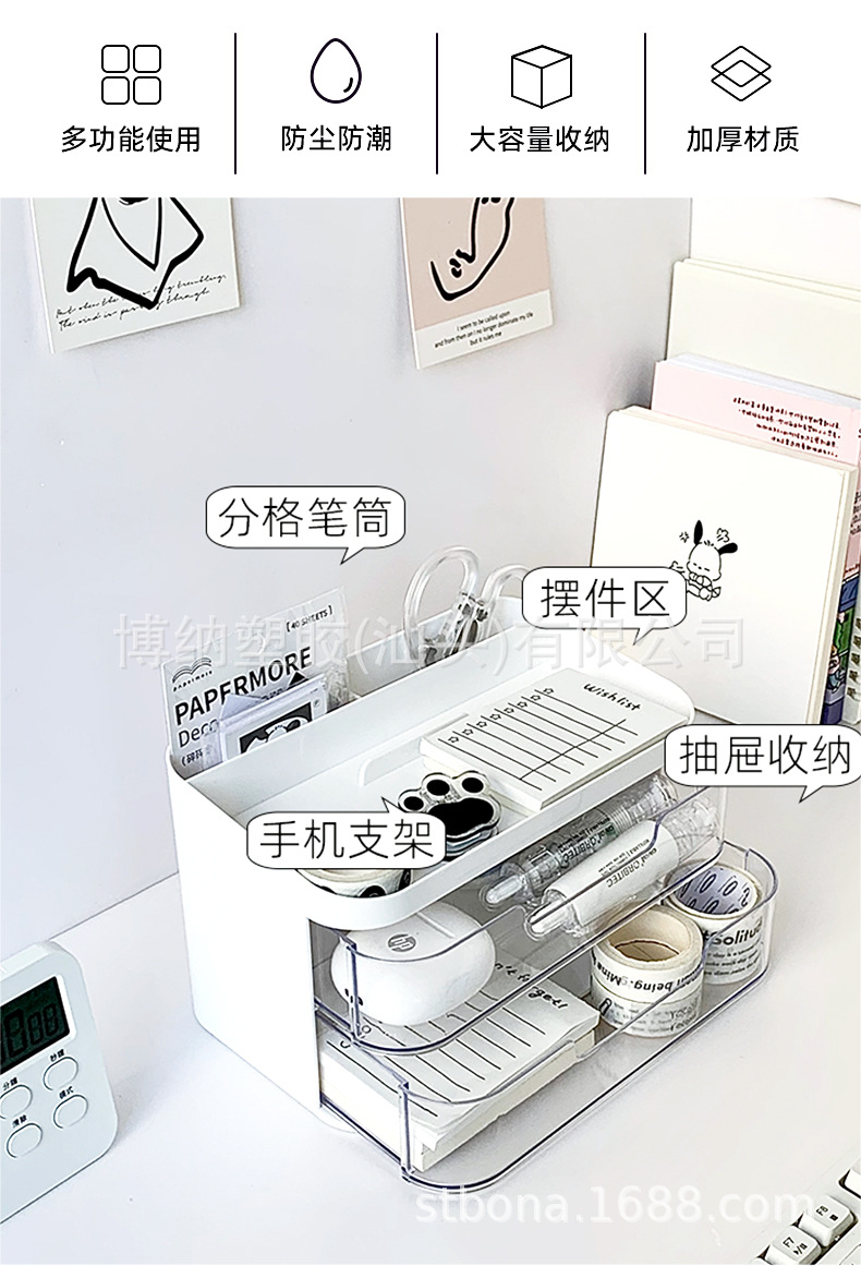 데스크탑 보관함 아크릴 투명 책상 문구 펜 홀더 서랍 랙 사무실 마무리 상자
