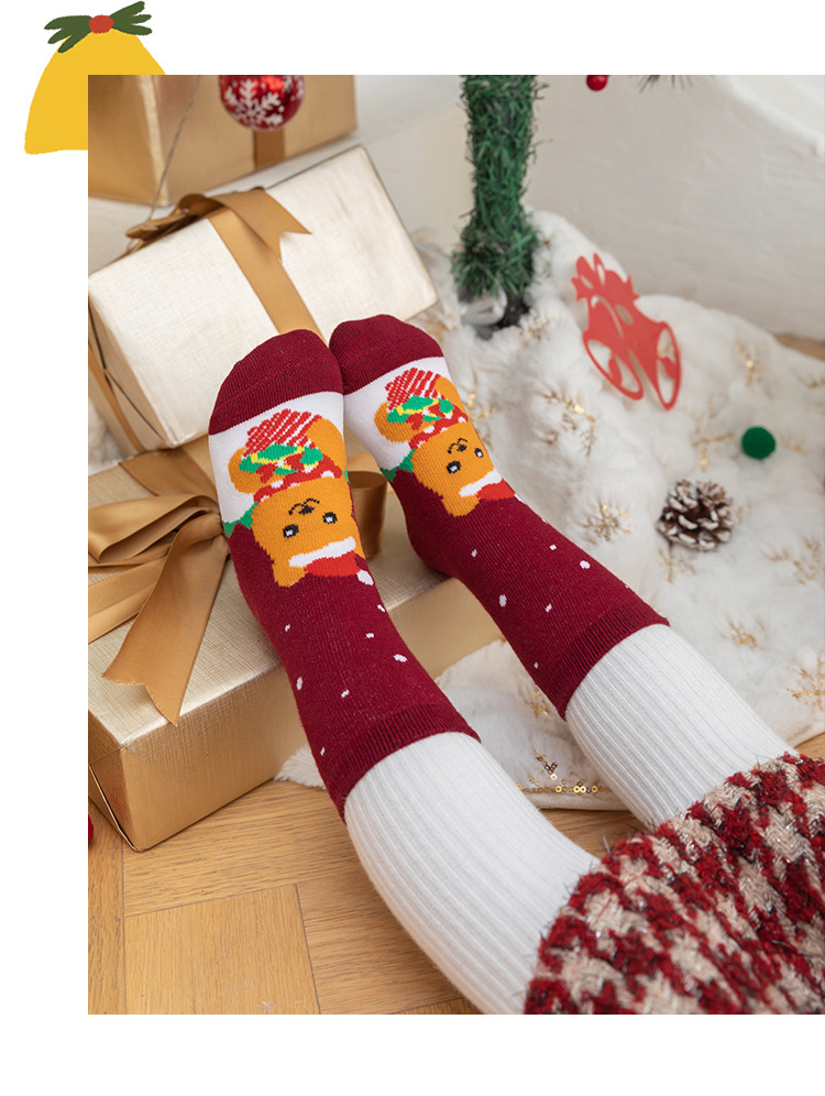 어린이 크리스마스 양말 가을과 겨울 산타 클로스 빨간 휴일 새해 축제 만화 소년과 소녀 아기 튜브 양말스토어 가기