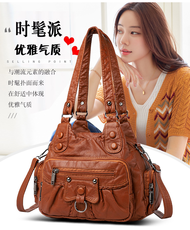 크로스 보더 새로운 대용량 워싱 가죽 백팩 대용량 해외 무역 숄더 크로스바디 백 레트로 부드러운 가죽 캐주얼 가방
