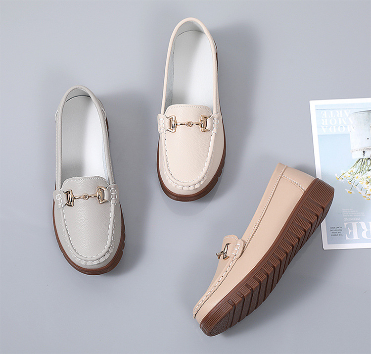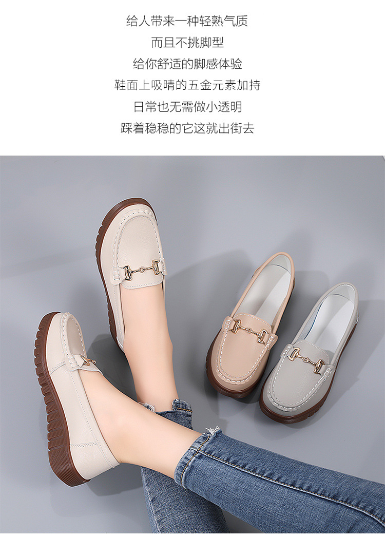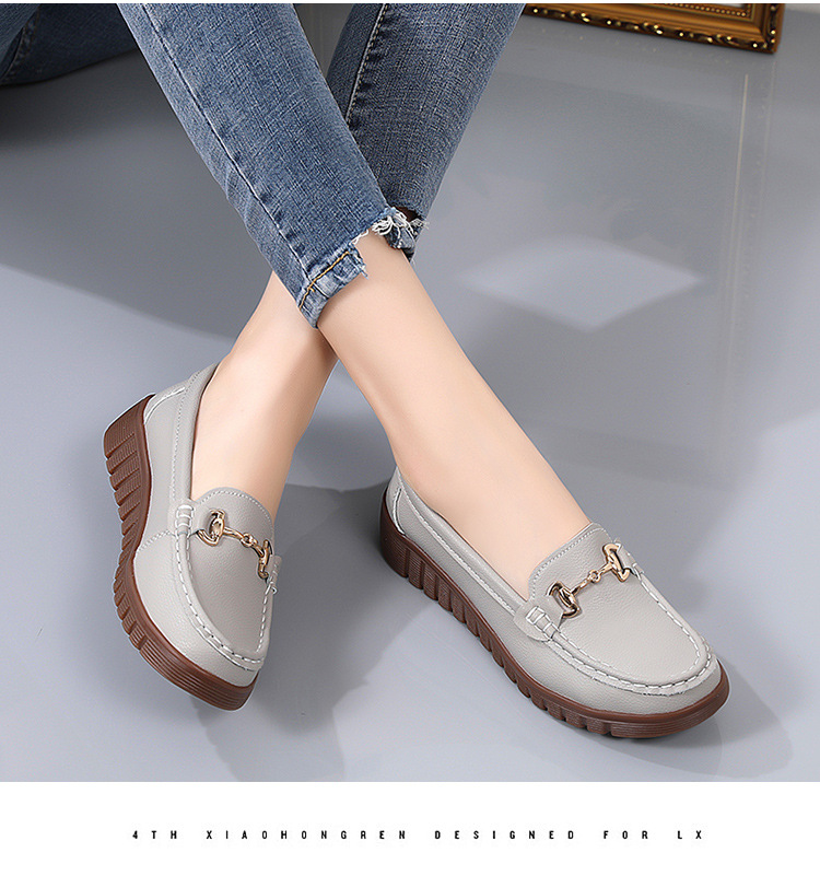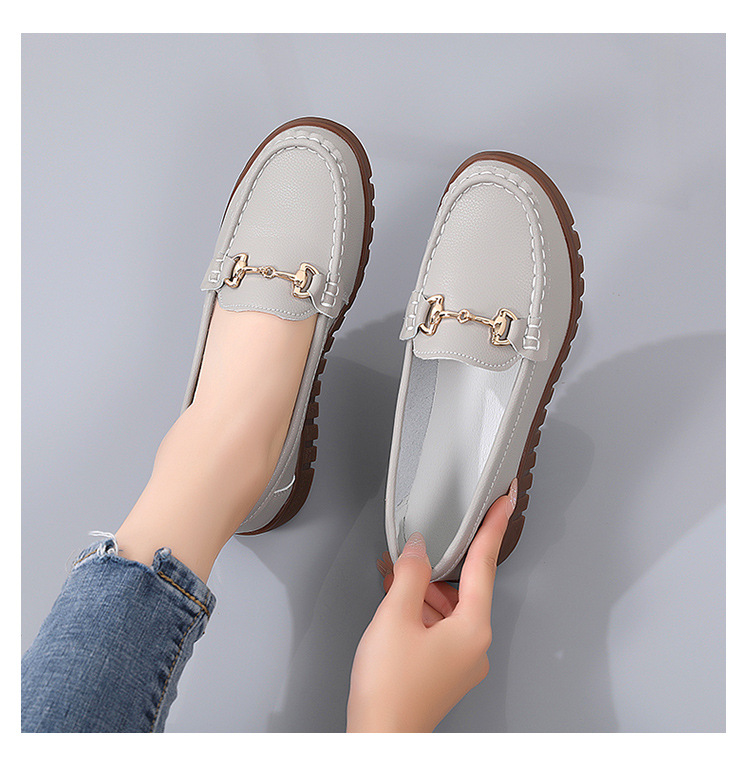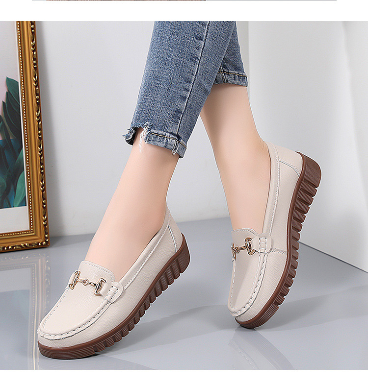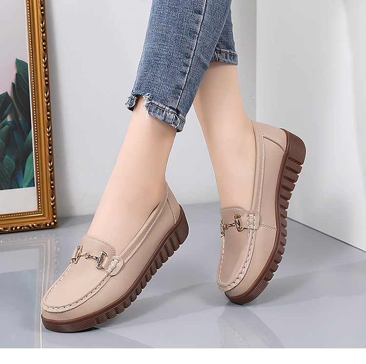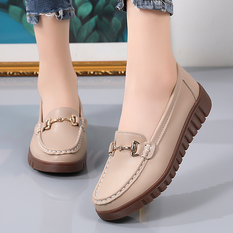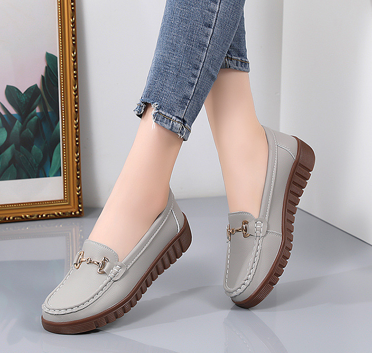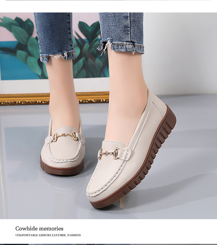 가을과 겨울 콩 신발 여성용 정품 가죽 금속 버클 통기성 부드러운 가죽 어머니 신발 미끄럼 방지 부드러운 단독 중년 및 노인 슬립온 신발스토어 가기