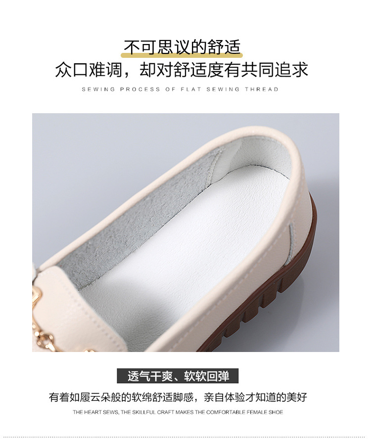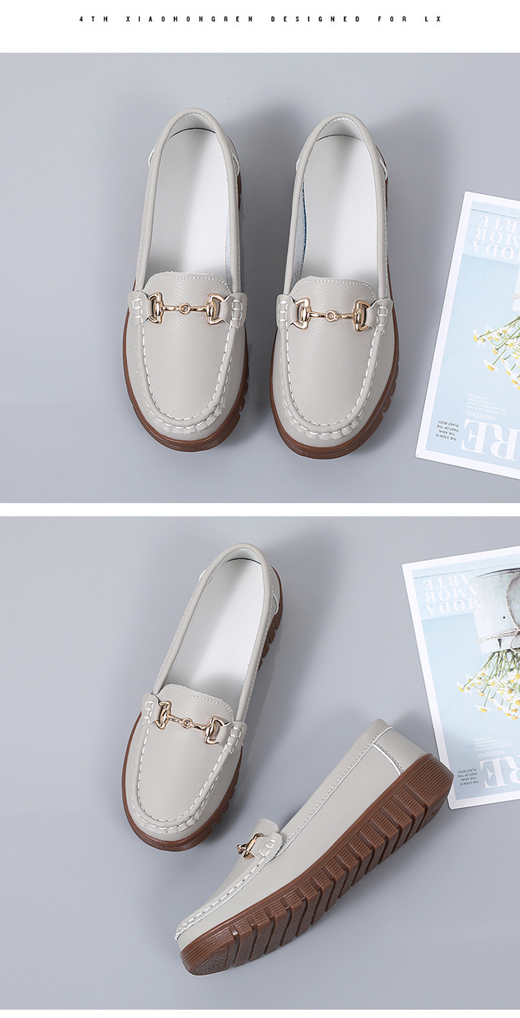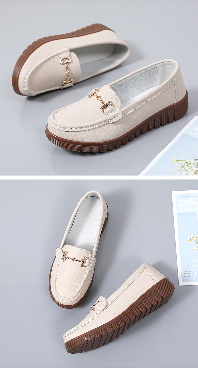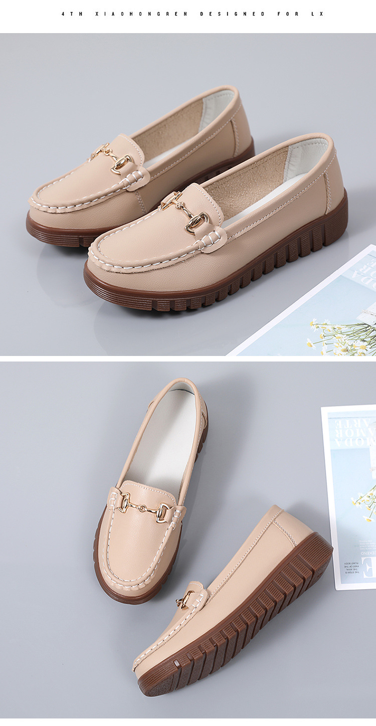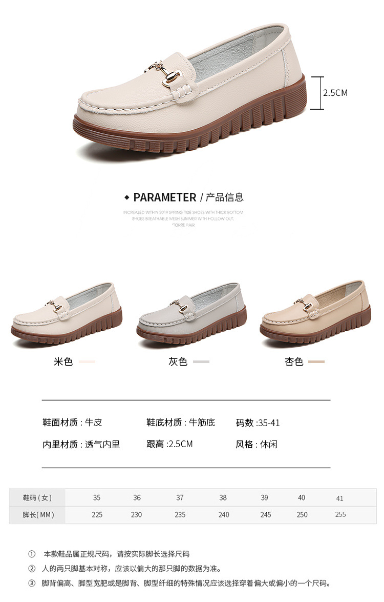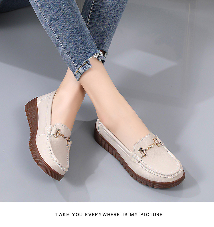 가을과 겨울 콩 신발 여성용 정품 가죽 금속 버클 통기성 부드러운 가죽 어머니 신발 미끄럼 방지 부드러운 단독 중년 및 노인 슬립온 신발스토어 가기