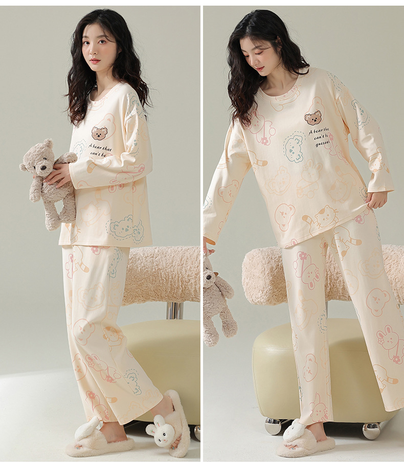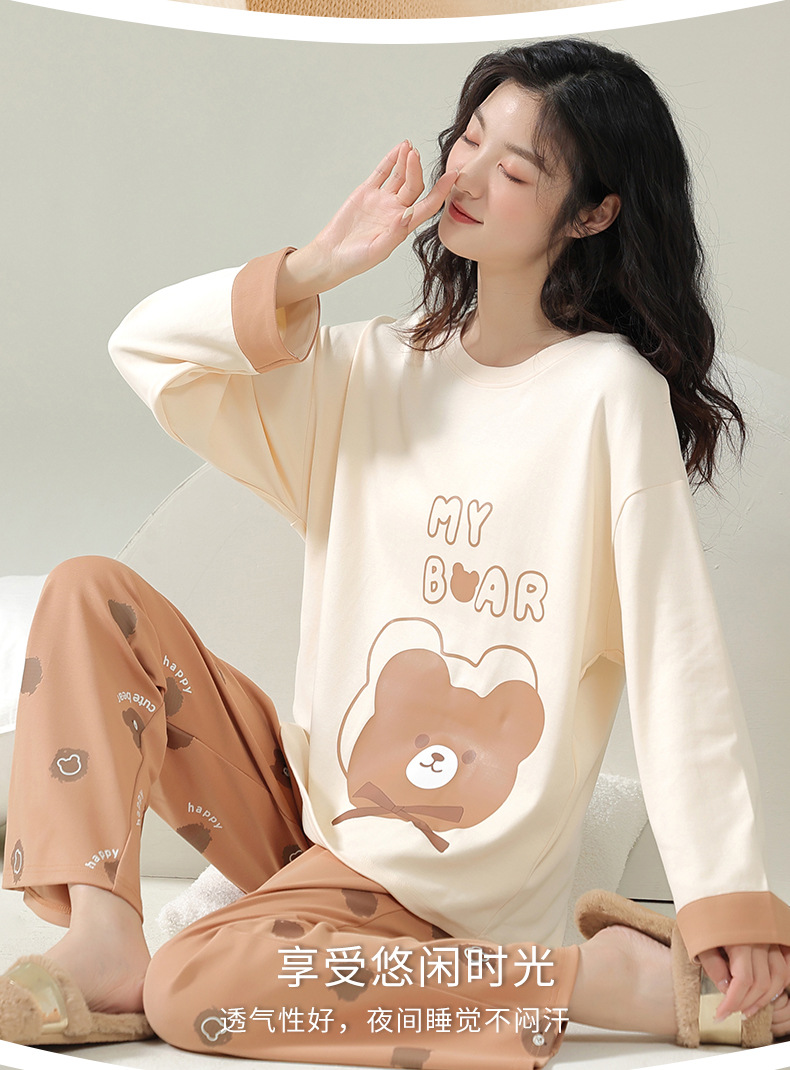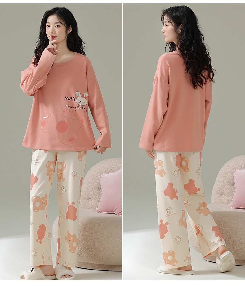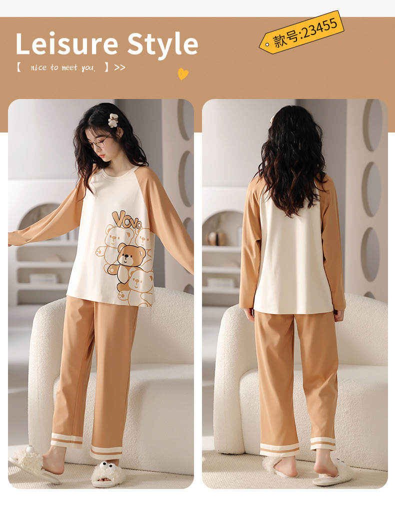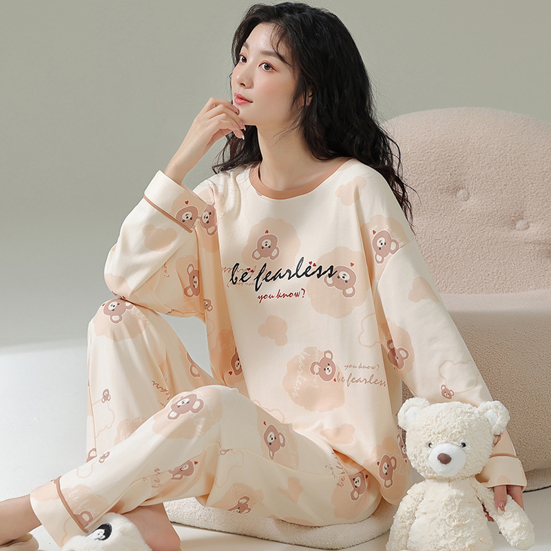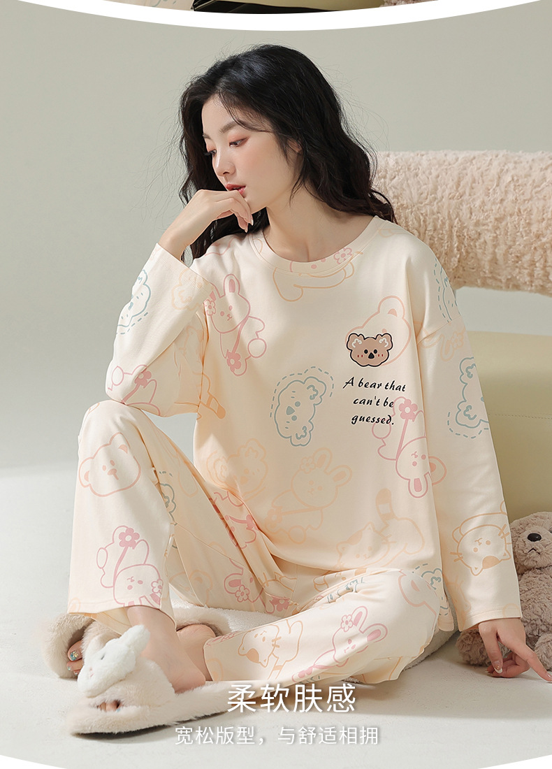 2023 여성을위한 새로운 잠옷 봄, 가을 면화 긴팔 가을 젊은 숙녀 학생 귀여운 만화 캐주얼 홈웨어스토어 가기
