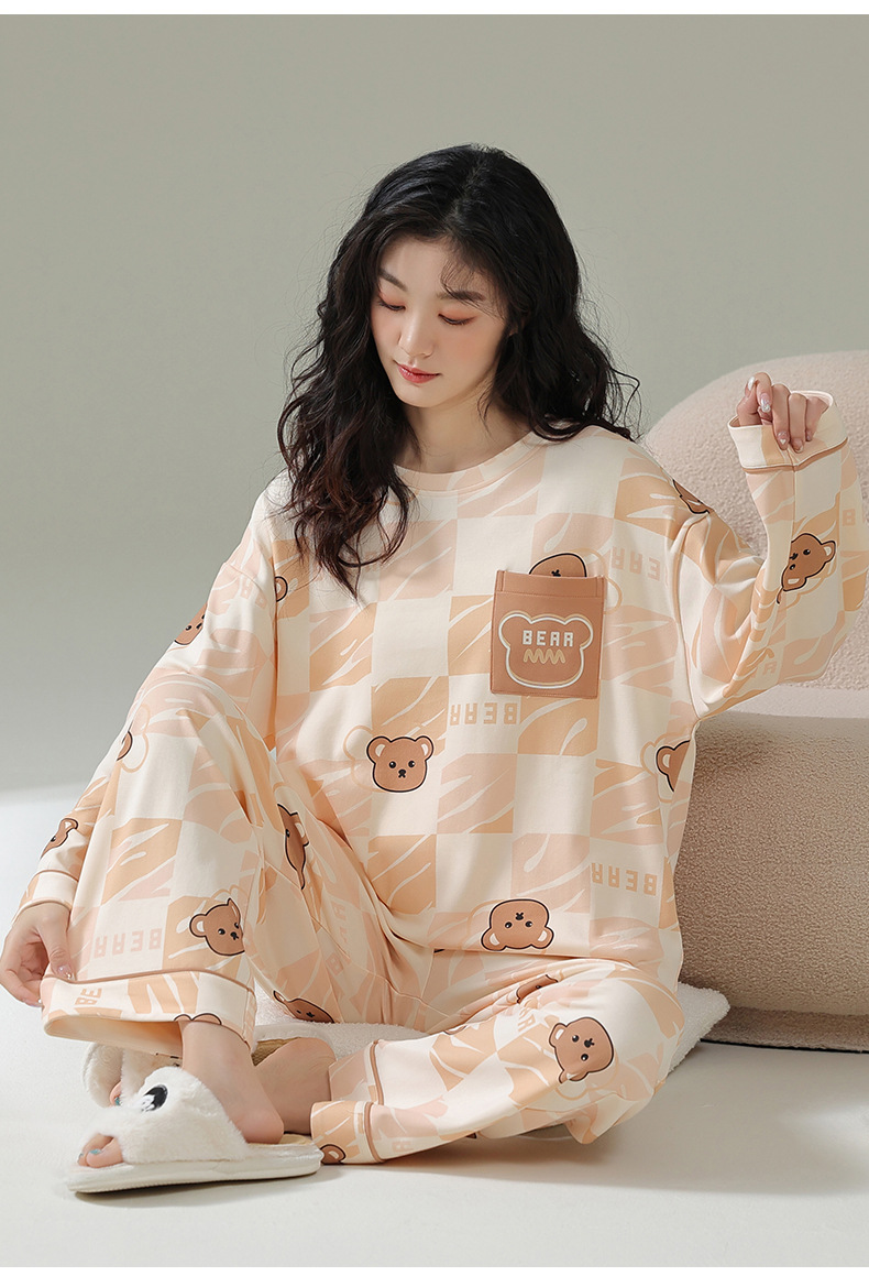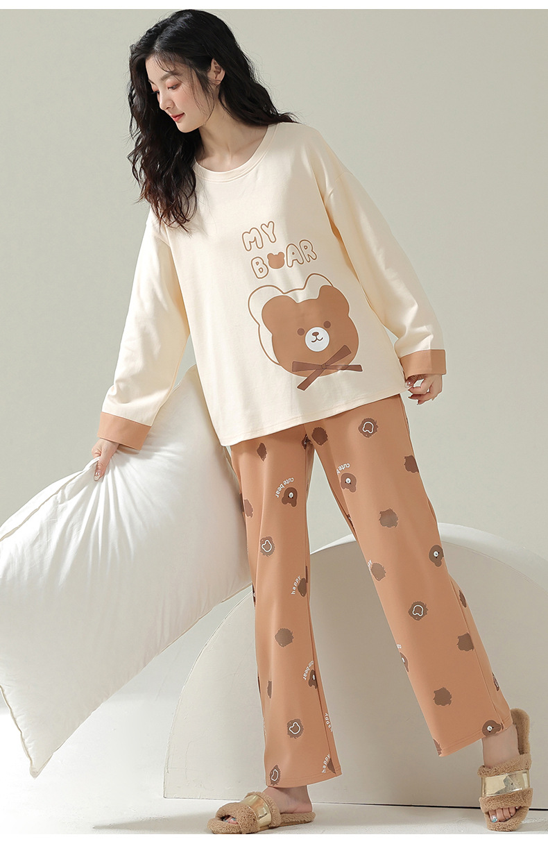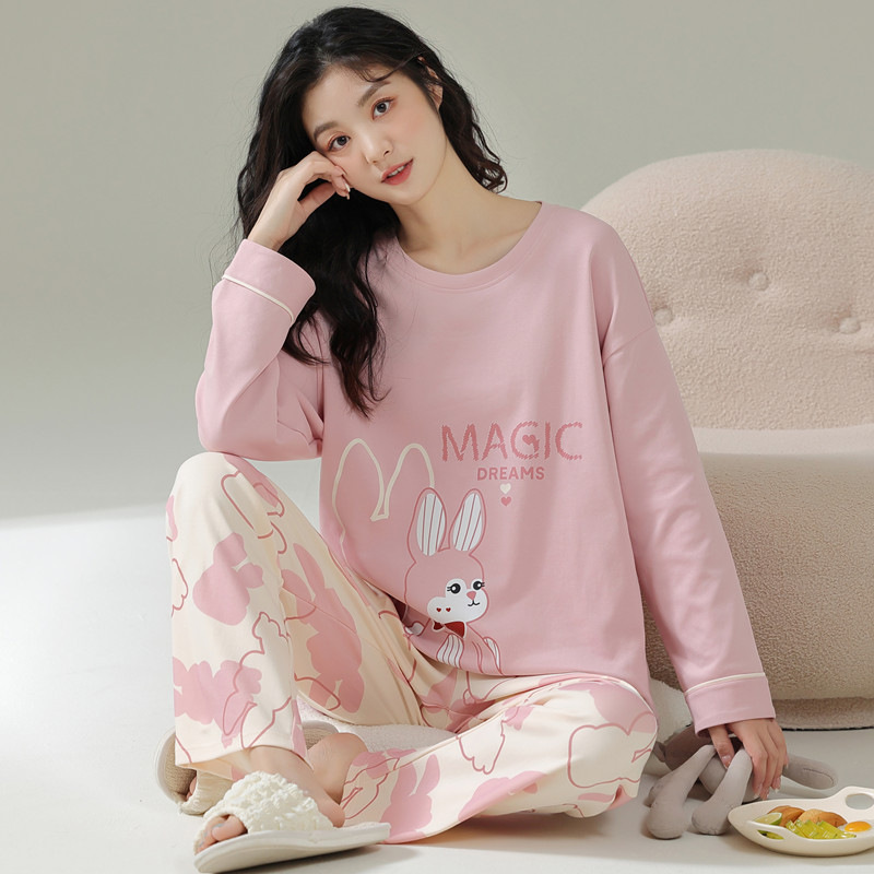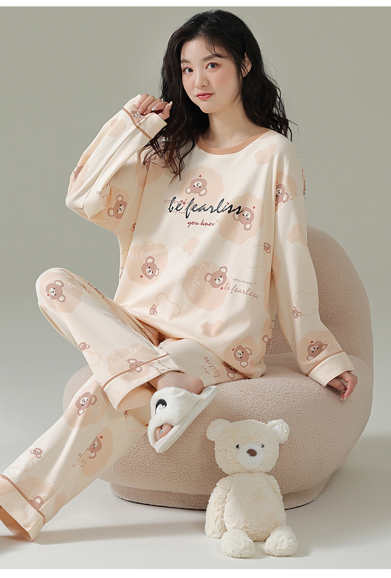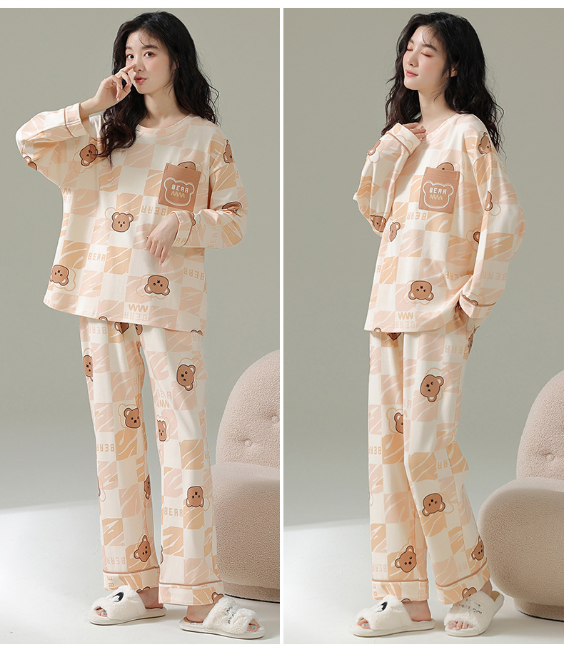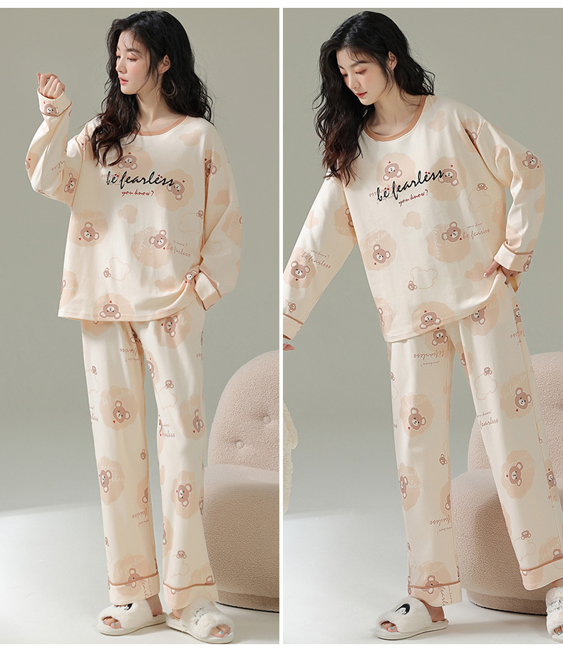 2023 여성을위한 새로운 잠옷 봄, 가을 면화 긴팔 가을 젊은 숙녀 학생 귀여운 만화 캐주얼 홈웨어스토어 가기