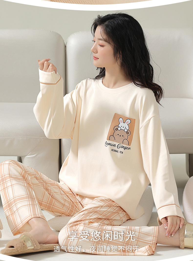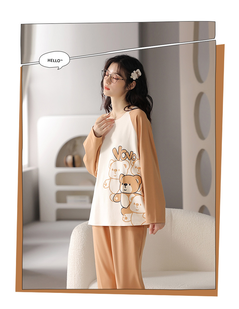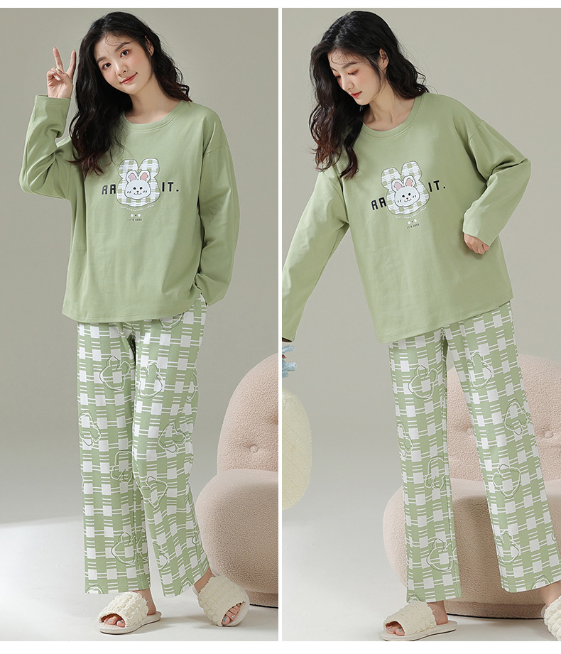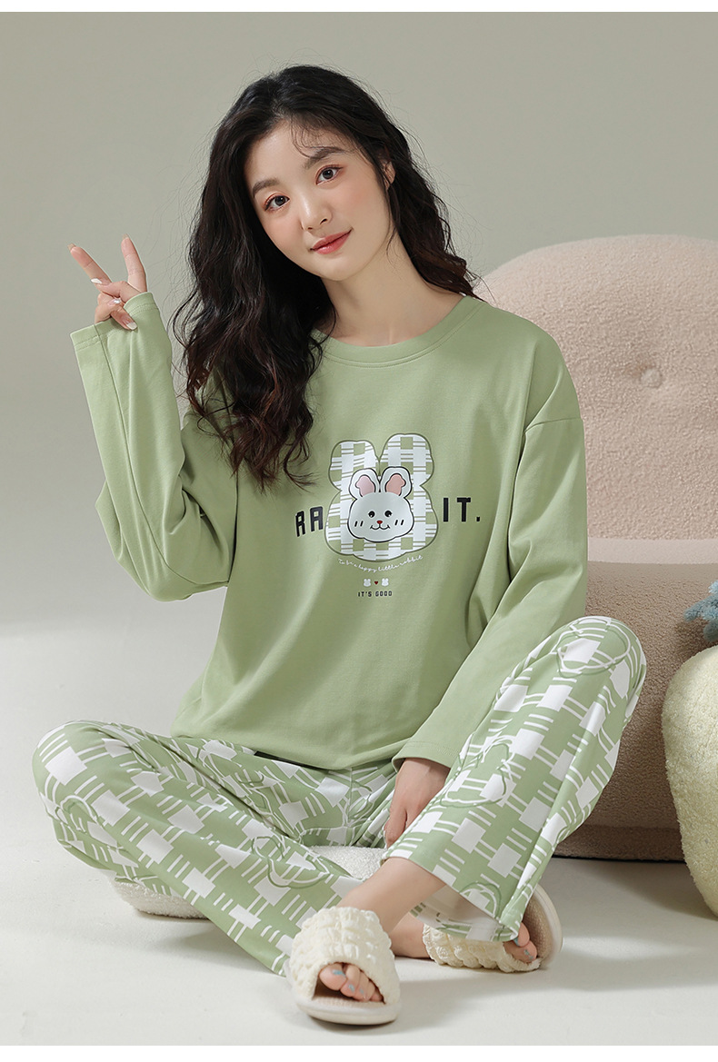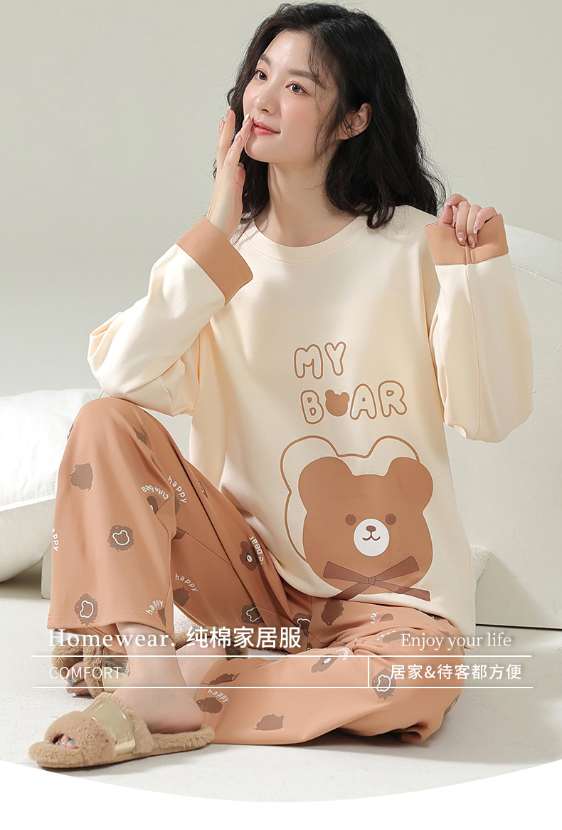 2023 여성을위한 새로운 잠옷 봄, 가을 면화 긴팔 가을 젊은 숙녀 학생 귀여운 만화 캐주얼 홈웨어스토어 가기