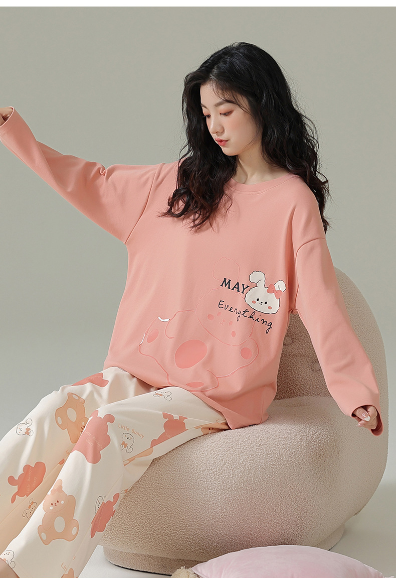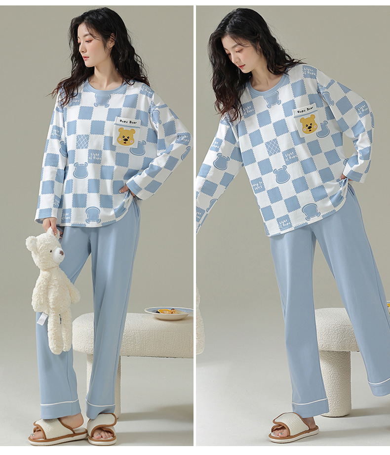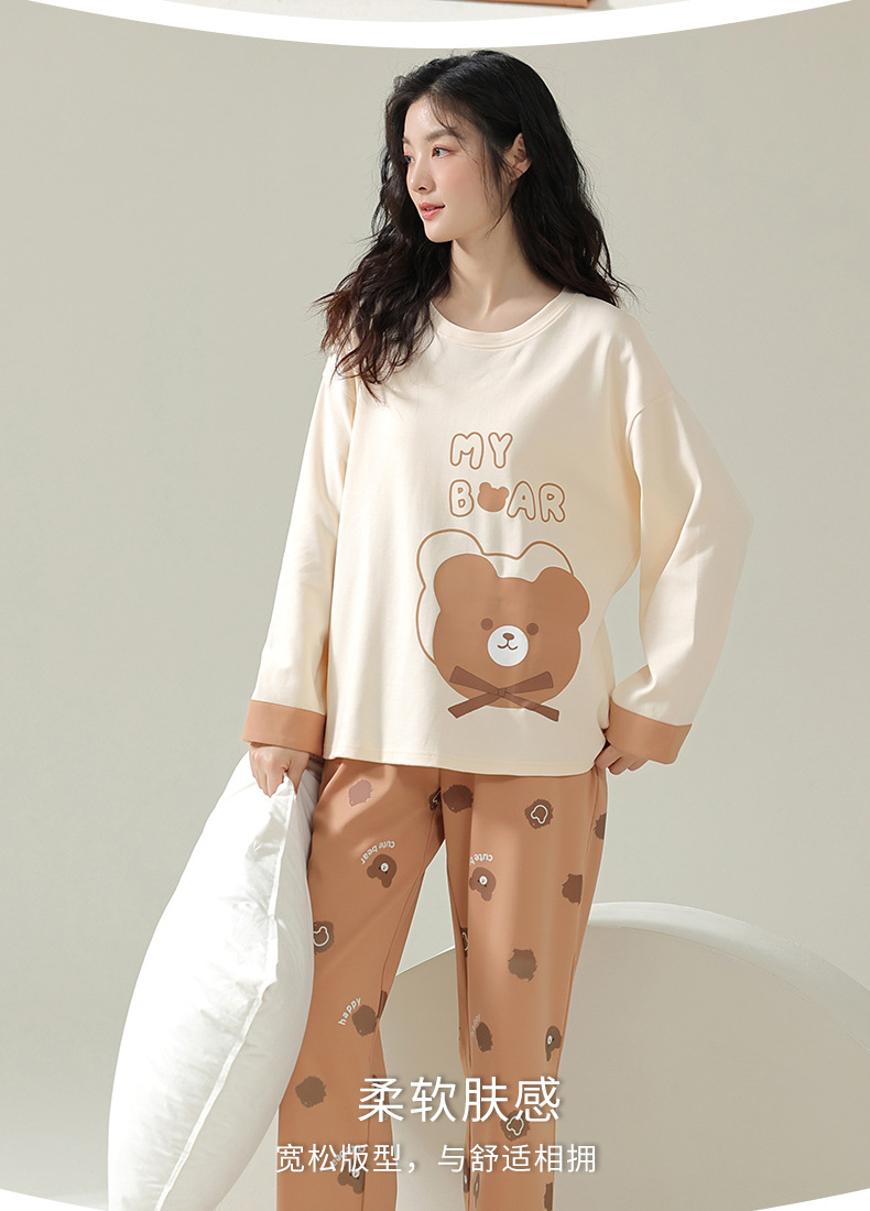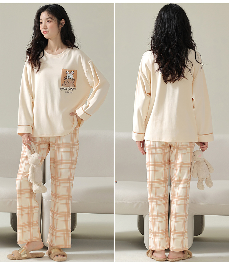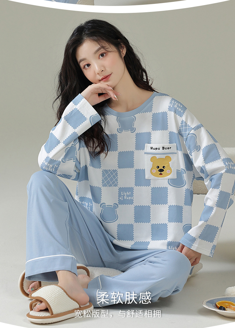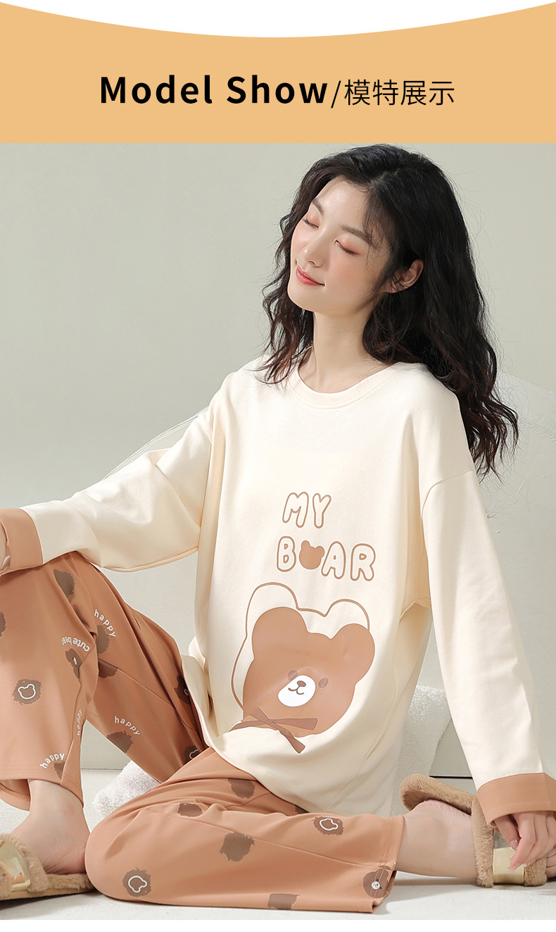 2023 여성을위한 새로운 잠옷 봄, 가을 면화 긴팔 가을 젊은 숙녀 학생 귀여운 만화 캐주얼 홈웨어스토어 가기