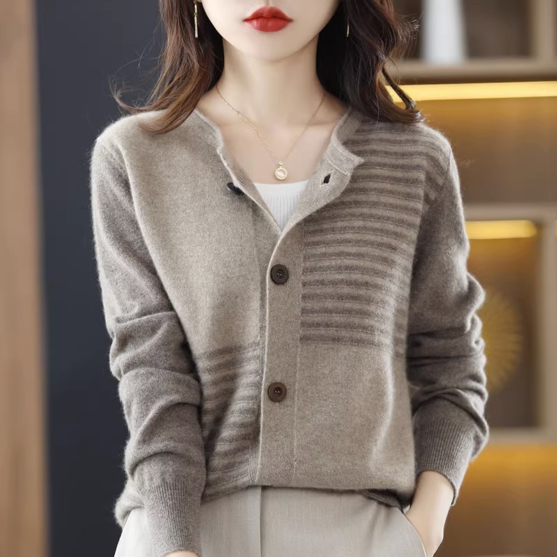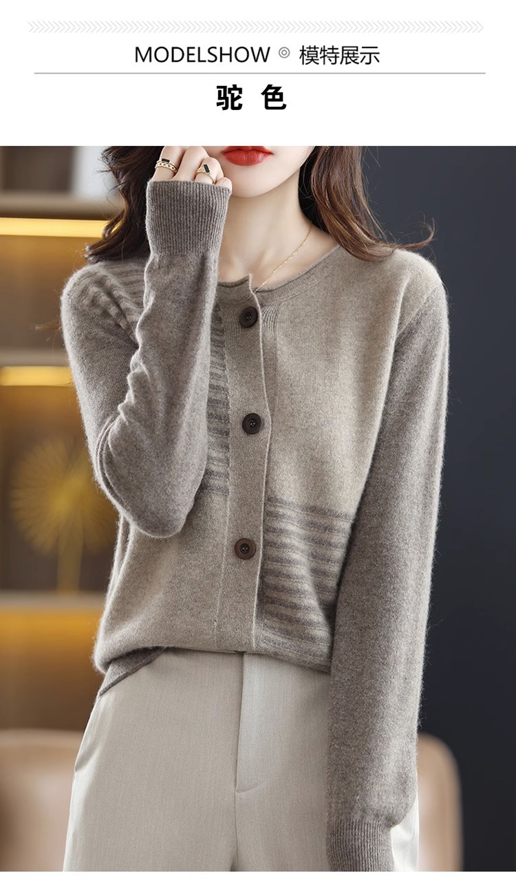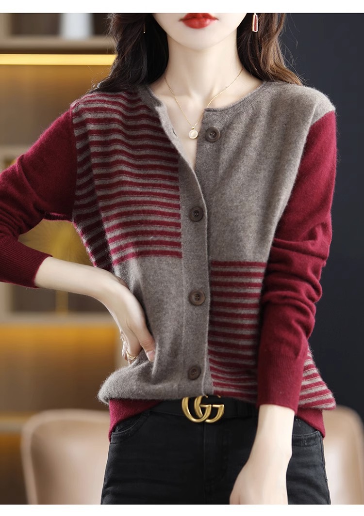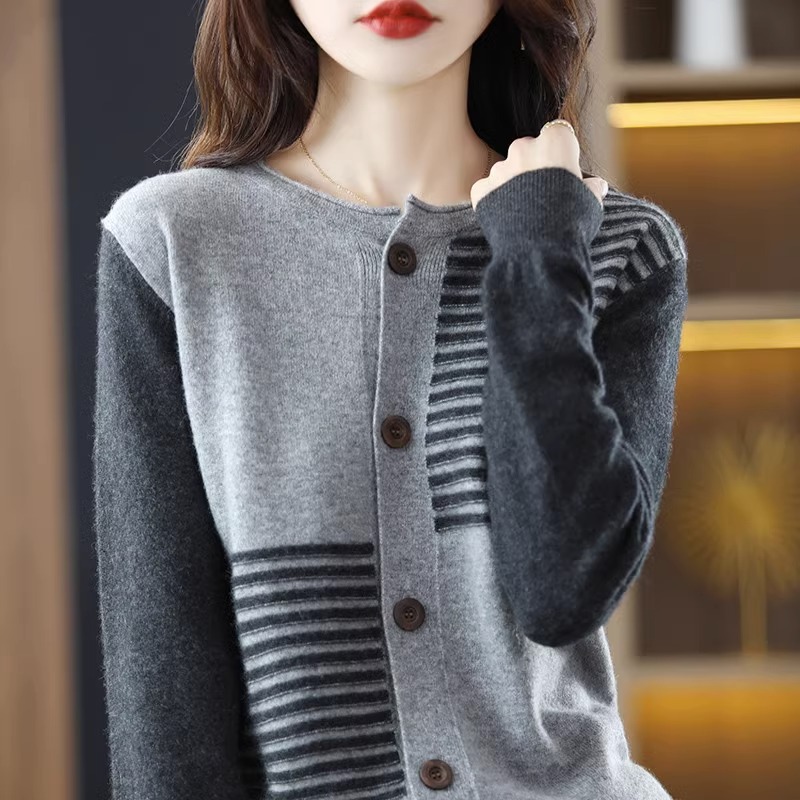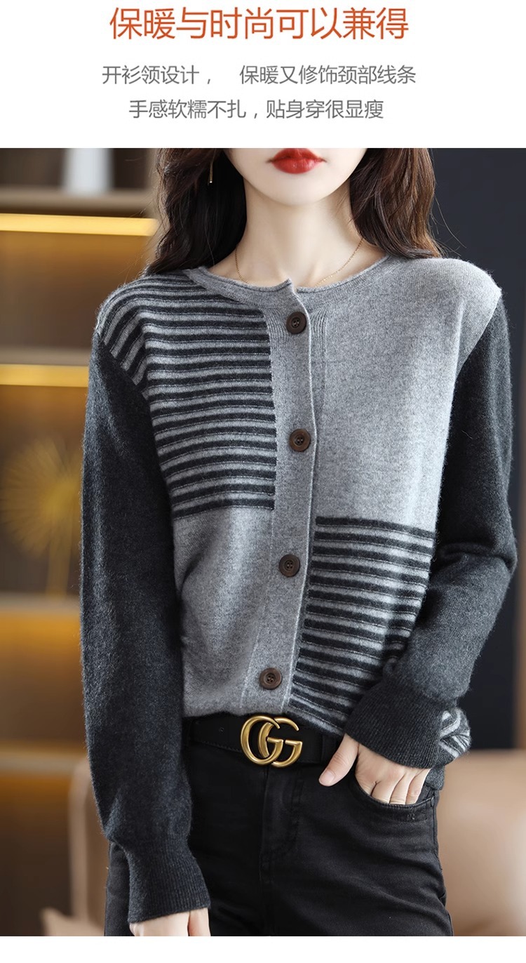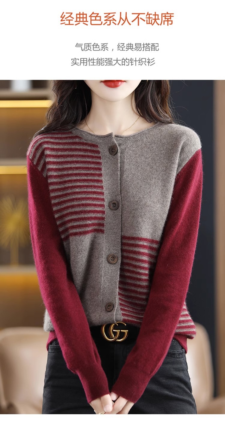 크루넥 니트 가디건 여성의 이른 가을 2023 새로운 컬러 블록 긴 소매 스웨터 한국 루즈한베이스 셔츠 재킷