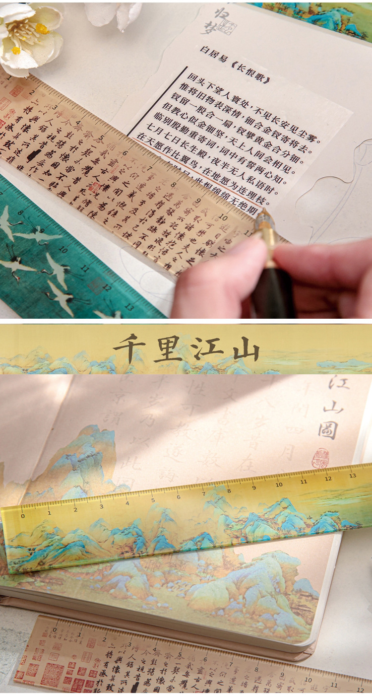 한 인치도 별이 가득한 고대풍 중국풍 아크릴 자, 고급스러운 핸드북 자, 시험용 문구 15cm
