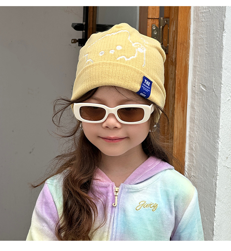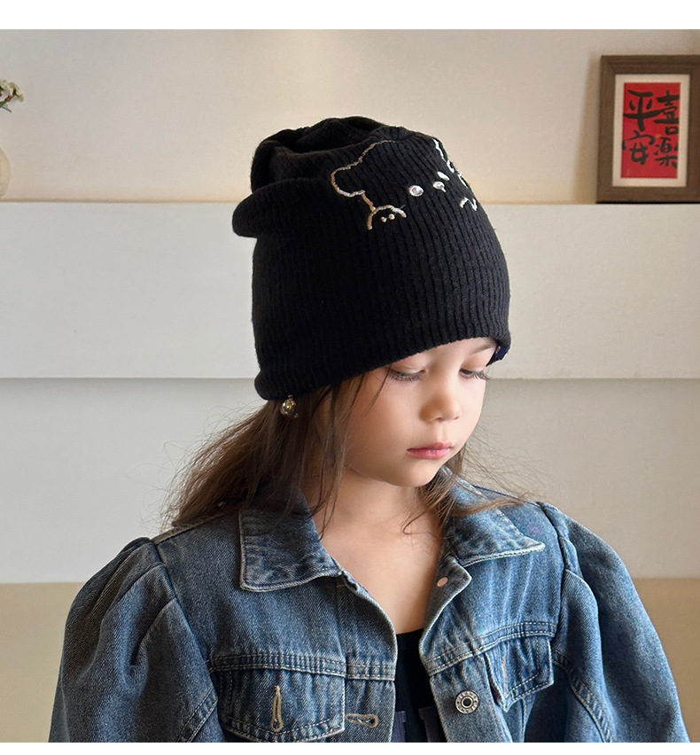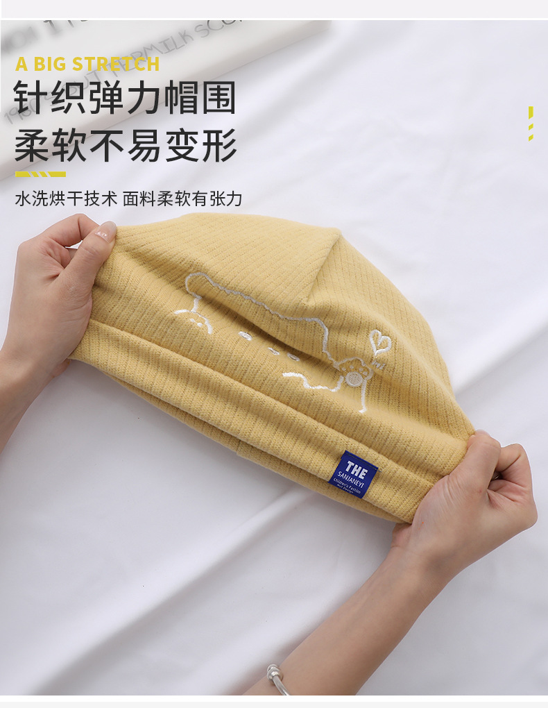 한국의 새로운 더블 하이 자수 귀여운 곰 턴업 니트 모자 가을과 겨울 모자 어린이 겨울 따뜻한 풀오버스토어 가기