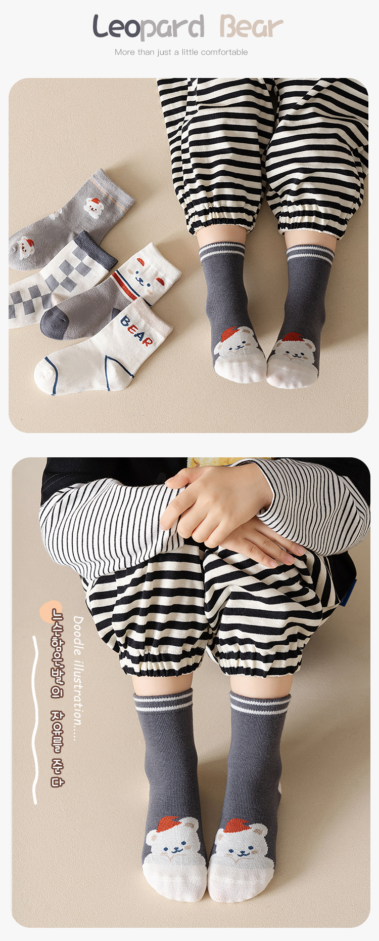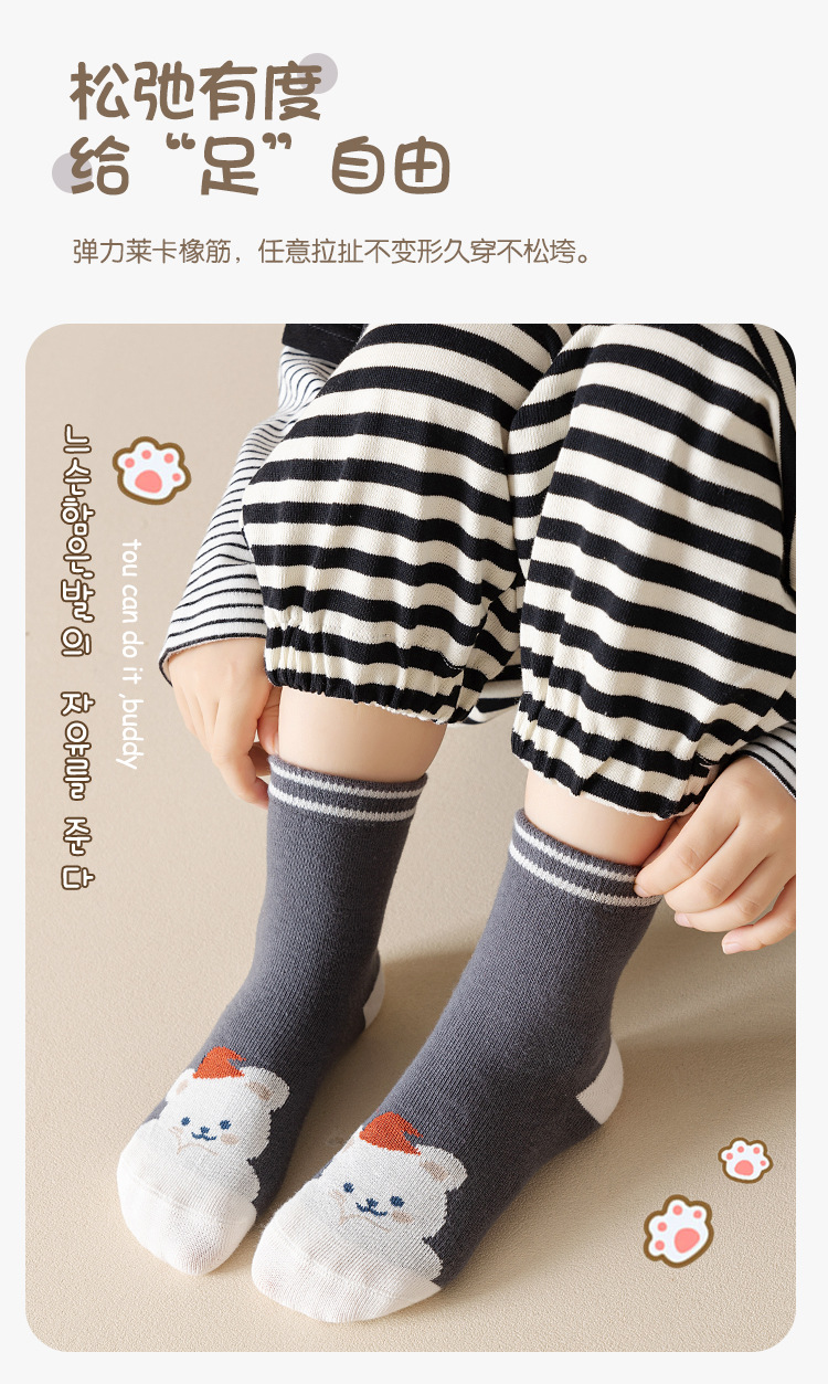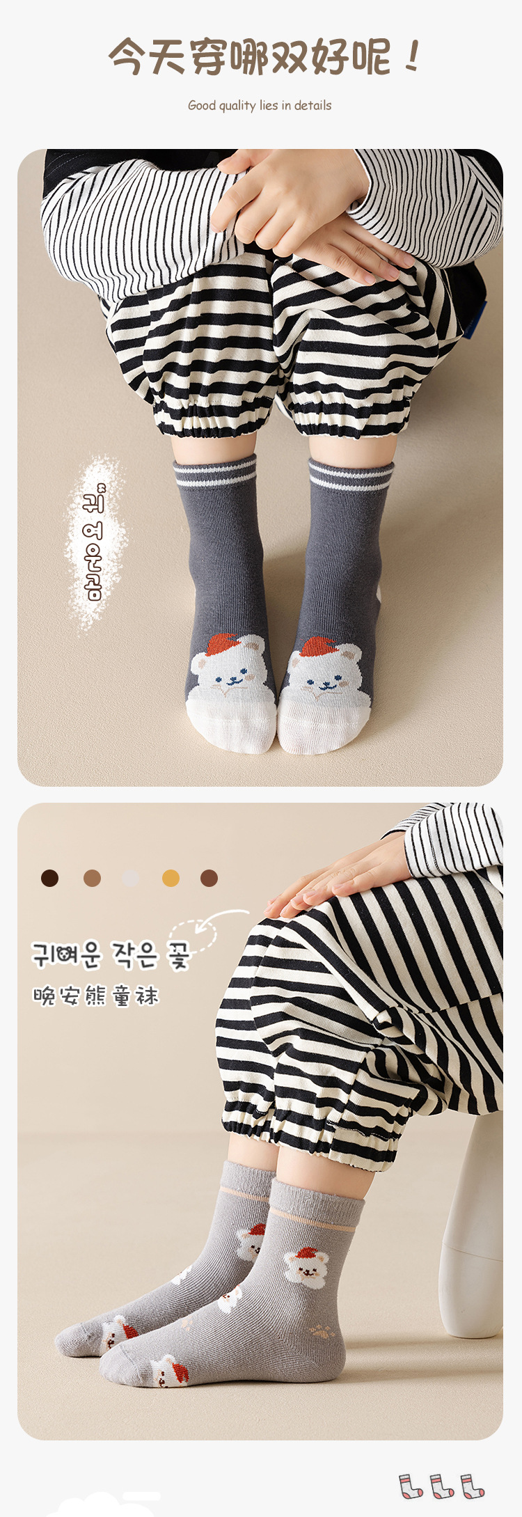 가을 겨울 아동용 양말, A급 신상품, 소년 소녀용 굿나잇 베어, 귀여운 만화 캐릭터, 큰 아동용 종아리 양말, 유아용 면 양말스토어 가기