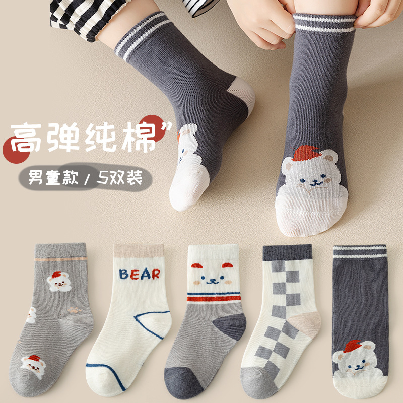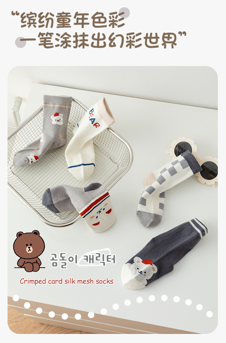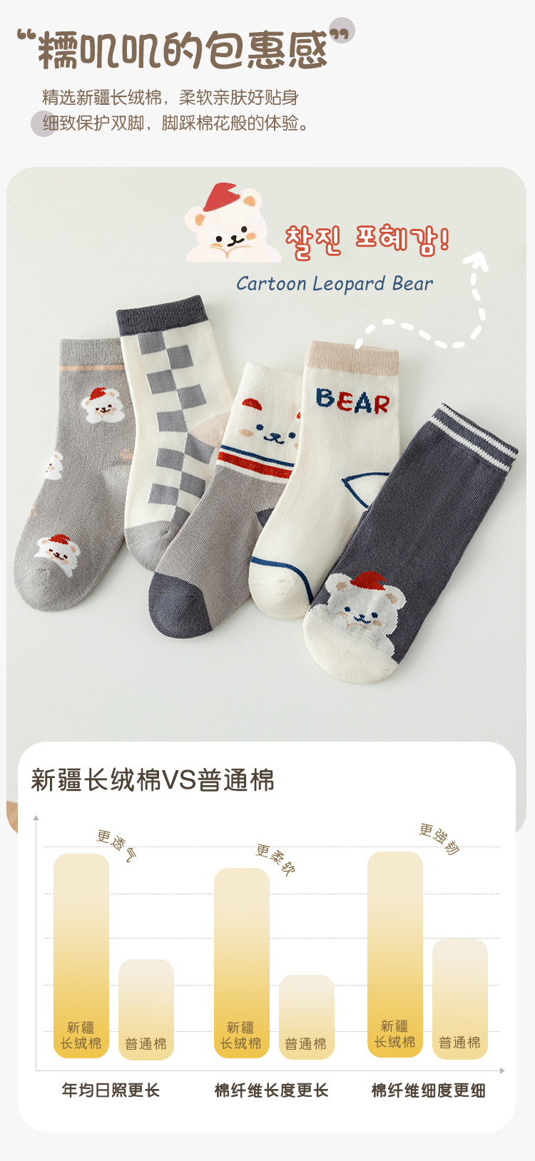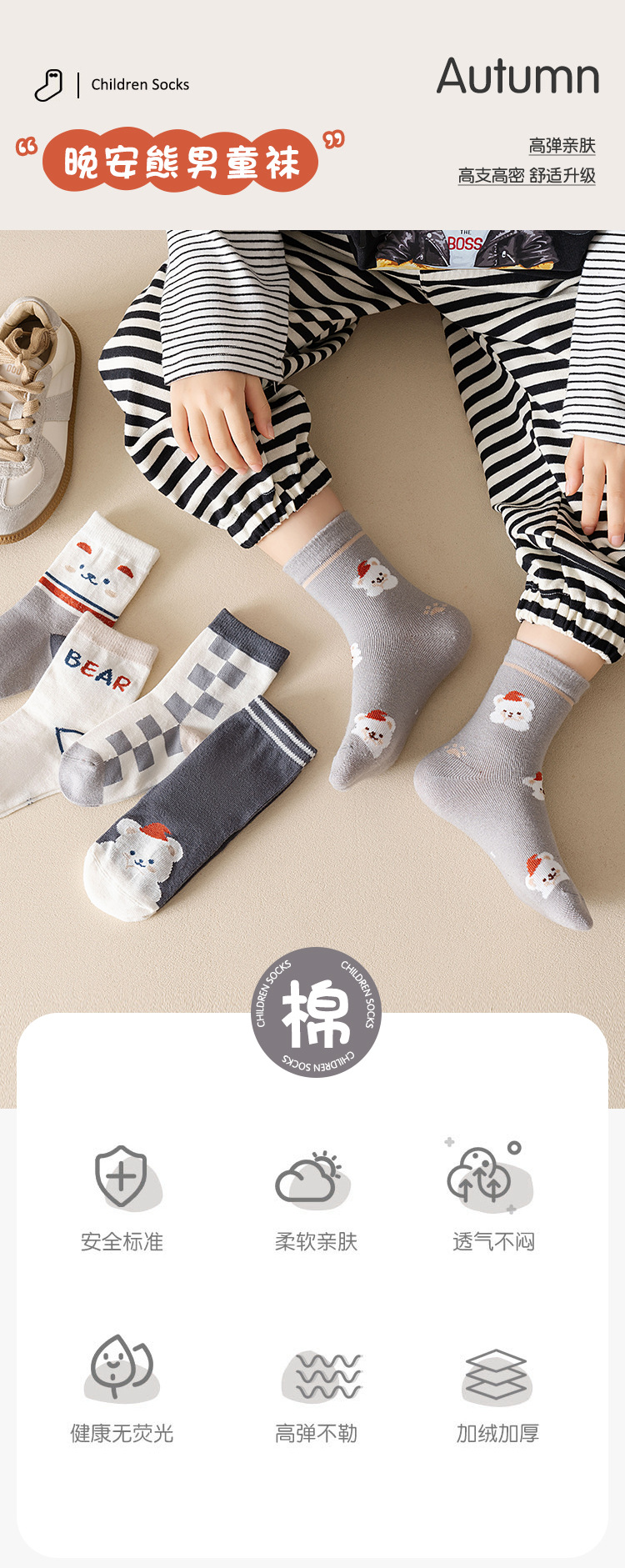 가을 겨울 아동용 양말, A급 신상품, 소년 소녀용 굿나잇 베어, 귀여운 만화 캐릭터, 큰 아동용 종아리 양말, 유아용 면 양말스토어 가기