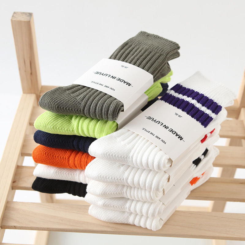 두꺼운 라인 양말 남자 유 웬레 같은 단색면 양말 일본식 빈티지 트렌디 중간 길이 양말 더미 양말 여성 스타킹스토어 가기