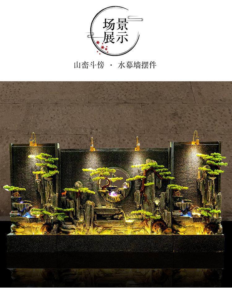 대형 바닥 물 커튼 벽 바위 분수 물 풍경 거실 행운 풍수 바퀴 높은 산과 흐르는 물 정원 장식스토어 가기