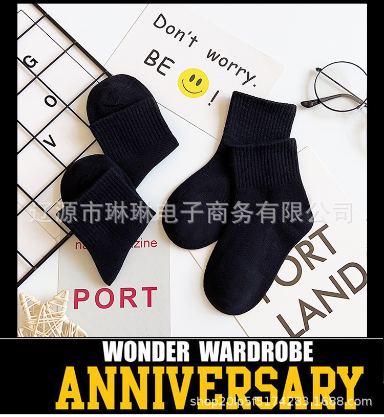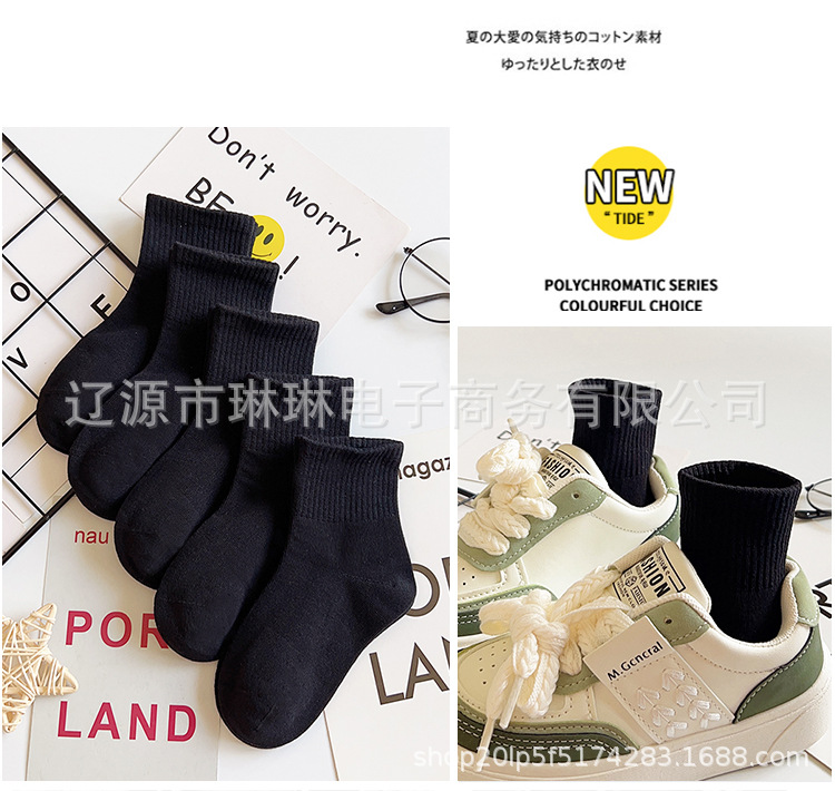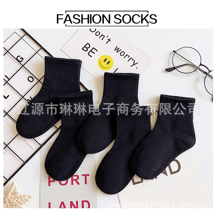 사랑의 진드기 어린이 양말 제조 업체 도매 재고 한국판 대학 스타일 스포츠 학생 순수한 검은 아기 튜브 양말스토어 가기
